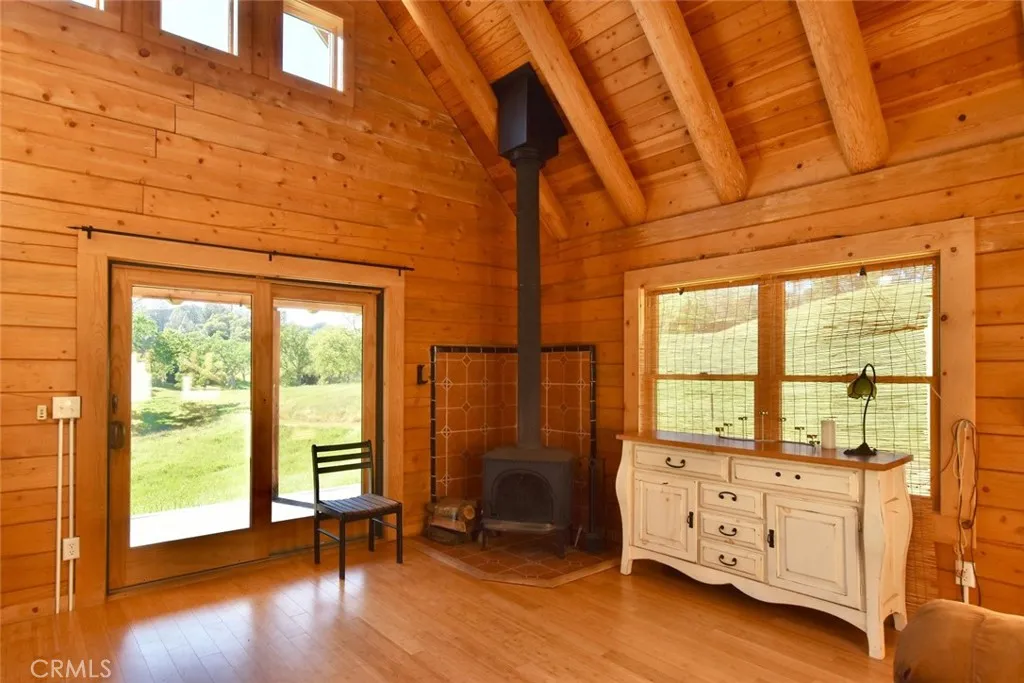 Classic Log Home River Retreat. Located within the gated Forest River subdivision of South Monterey County, this 41.98 acre property offers a rare combination of usable land, end-of-road privacy, and classic California ranch character. Built in 2010, the 1,626 square foot log home features 3 bedrooms, 2 bathrooms, and a spacious loft overlooking the main living area. Vaulted ceilings with exposed beams create an open, inviting atmosphere, while large wood-clad windows bring in natural light and frame the surrounding landscape. A covered porch spanning two sides of the home extends the living space outdoors and captures sweeping views of rolling hills, open meadows, and mature oak trees. Wood-clad sliding glass doors from both the living room and dining area open directly to the front porch, creating a seamless indoor-outdoor connection. The land is exceptionally usable, with gentle topography, established roads, and a balanced mix of open pasture and oak woodland. Zoned Permanent Grazing (PG), the property supports agricultural use, livestock, and long-term land stewardship. Multiple potential building sites offer flexibility for expansion or additional improvements, while elevation changes provide both privacy and scenic vistas throughout. Additional features include a solar power system with newly replaced batteries, a private well with a new solar pump system, and a 5,000-gallon water storage tank, supporting a self-sufficient, off-grid lifestyle. The property is also equipped with a conventional septic system, private gated entrance, and abundant wildlife. Ownership wit