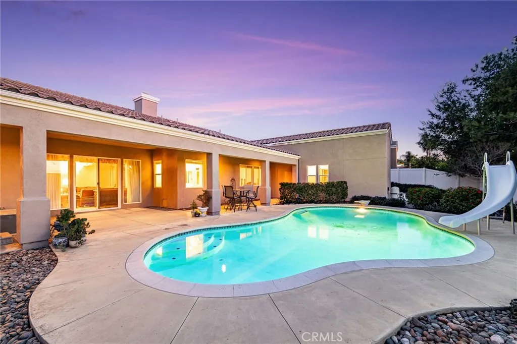 Rarely available and highly sought-after, this premier cul-de-sac residence features a massive RV garage plus a 3-car tandem garagethe ultimate setup for boats, trailers, or a custom workshop. Situated on an expansive lot of just under a half-acre, this property offers the space and privacy that is nearly impossible to find. Inside, the open-concept layout shines with a granite-clad kitchen that flows directly into the spacious living room. The large primary suite is a true retreat, offering a walk-in closet, a sprawling bathroom, and peaceful views of the grounds. Beyond the main living area, youll find three additional generously sized bedrooms providing plenty of space for family or guests. Perfectly tucked away in the hallway is a built-in tech center/office nook, offering a dedicated workspace without sacrificing a bedroom. Step outside to an entertainers dream! A large covered patio leads to a sparkling bogner pool with a slide and diving board, complemented by an above-ground spa. With tons of additional room for ADU potential or whatever you can dream of, this massive lot offers endless possibilities. Perfectly located near the 60 freeway and one of Jurupa Valleys brand-new shopping centers you truly cant beat this location! This is an extremely rare home don't miss this opportunity to make it your own.