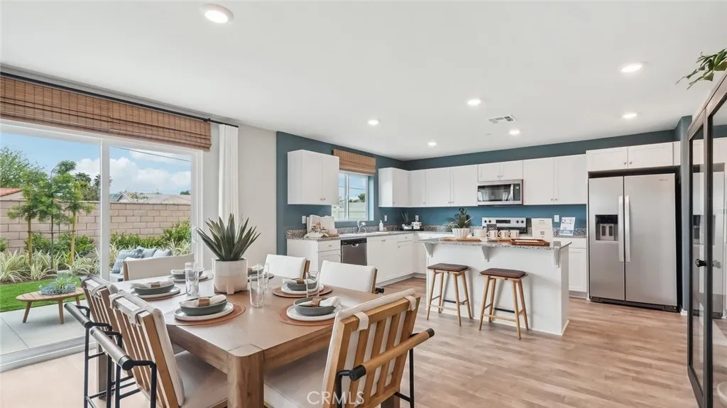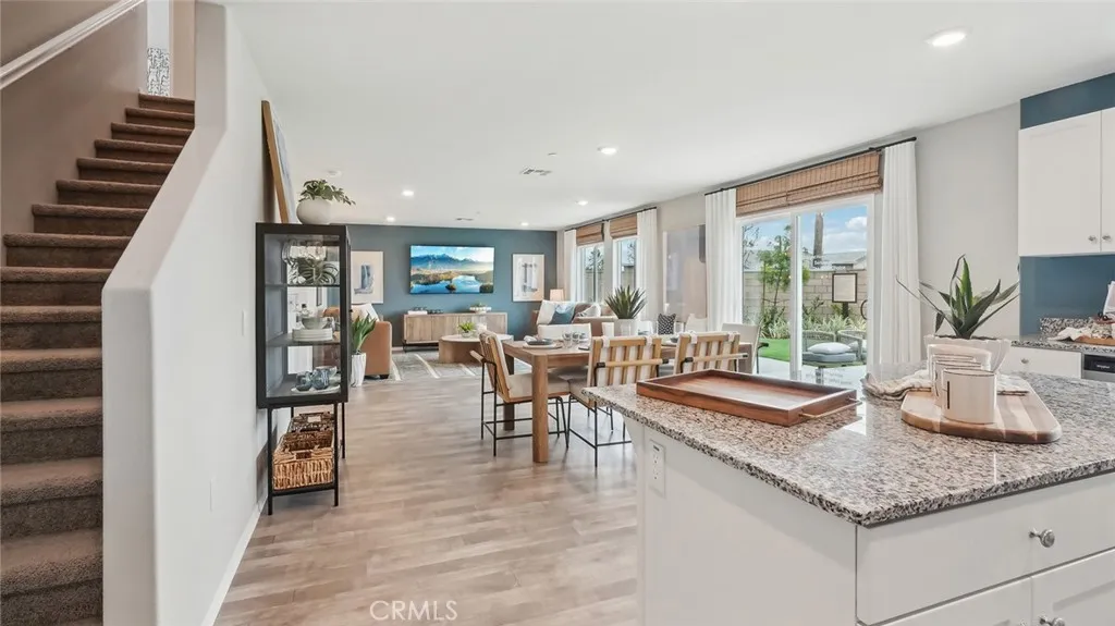 MODEL HOME - This Plan 2,480 square foot MultiGEN suite home on a corner lot has a California Traditional facade and a separate entry on the front side of the home to the suite with a lounging area, kitchenette with sink, microwave, and mini-refrigerator, stackable washer and dryer closet, bedroom and a full bathroom. The main home has a downstairs powder bathroom, open concept great room with dining area and a kitchen island with granite counters, stainless-steel appliances, walk-in pantry, and white shaker-style cabinetry throughout. Upstairs is a Tech area, laundry room with linen closet, the primary bedroom with ensuite and walk-in closet, two additional bedrooms, and full bathroom. The home comes with Smart Home technology, is all-electric, and includes an attached 2-car garage pre-plumbed for an electric car. The front yard is landscaped and irrigated. We anticipate this home will be ready for move in June 2026.
