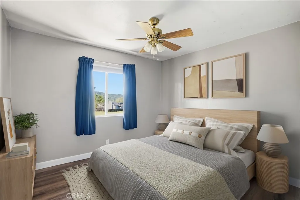 Introducing The Nacimiento Retreat, a welcoming escape in the sought-after Heritage Ranch community, just minutes from Lake Nacimiento and surrounded by endless opportunities for outdoor recreation. Offering 3 bedrooms, 2 bathrooms, and 1,216 sq ft, this home blends comfort, functionality, and a relaxed lifestyle setting. Entry from the left side of the home leads upstairs to the main living area, where an open-concept layout creates an easy, natural flow for both everyday living and entertaining. The living room is warm and inviting, featuring a wood pellet fireplace, ceiling fan, and vinyl flooring, with dual sliding glass doors that open to a private balconyperfect for enjoying the fresh air and peaceful surroundings. The space transitions seamlessly into the kitchen, complete with stainless steel appliances, a center island ideal for gathering, abundant cabinetry and shelving, and a spacious walk-in pantry. The primary suite serves as a comfortable retreat, complete with a walk-in closet, ceiling fan, and a private en-suite bathroom featuring a shower/tub combo and single vanity. Two additional bedrooms offer versatile space for guests, a home office, or hobbies, and are conveniently served by a second full bathroom with a shower/tub combo and single vanity. Step outside to a back deck that leads down to the backyard, creating additional space to relax, entertain, or take in the natural surroundings. The property also includes leased solar panels and a covered portion of the driveway for added convenience. As part of Heritage Ranch, residents enjoy access to a wealth of