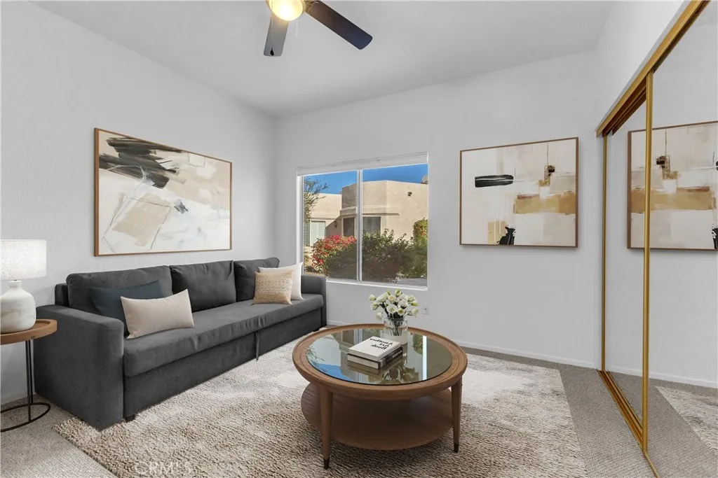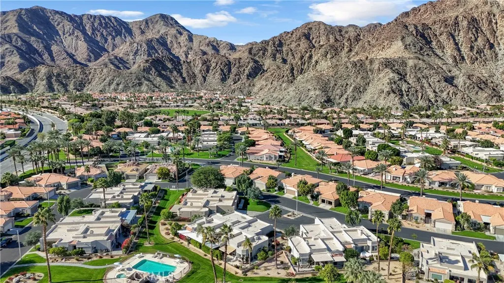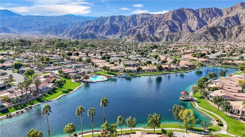 Welcome to Laguna de La Paz, a favorite gated community in La Quinta known for its lake, lush landscaping, and easygoing desert vibe. This 2-bedroom, 2-bath condo enjoys a great location away from traffic noise and right next to several amenities. Step outside, head straight to the pool, take a lap around the lake, or walk to the tennis and pickleball courts, the fitness center, and the clubhouse. The home offers a comfortable, open layout with plenty of natural light and a living space that feels welcoming the moment you walk in. The kitchen flows nicely into the dining and living areas, keeping everything connected and easy. The primary bedroom, which has its own spacious bathroom and lots of closet space, opens to a secluded patio with a pergola. The second bedroom and bath provide flexibility for guests, working from home, or weekend visitors. With a freshly painted interior new appliances, new carpet and custom made blinds, this home is ready for you to put your touch on it. Located on the only cul-de-sac in the community and well positioned to take advantage of gentle natural light without harsh direct sun, this home is a peaceful place to unwind in a beautifully maintained community that is close to golf, shopping, dining, and everything La Quinta has to offer.