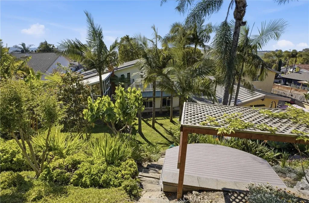 This beautiful 4-bedroom, 3-bathroom tri-level home in a desirable neighborhood in Carlsbad offers easy, living with thoughtful design. Step inside to soaring vaulted ceilings in the welcoming foyer, leading up to an open loft-style family room which has a full length bar for entertaining. The living/dining combination features a cozy gas fireplace with remote control for effortless ambiance. This opens up into a bright sunroom that beautifully frames the tropical backyard oasis. Note: The sunrooms additional 322sf is not included in livable area. The split level design is ideal for comfortable living without excessive climbing. The primary suite includes a versatile bonus area with a loft bed, desk workspace below, and a convenient sink. Downstairs, the secondary bedroom connects to a permitted bonus room and full bathroom, can be used as an in-law floor plan, guest suite, or junior ADU, complete with a separate side-yard entrance for added privacy. Additional improvements include a newer roof, new system pavers in the driveway, fresh interior paint, a fully paid solar system for energy savings, whole house Halo water system and an electric car charging outlet in the garage. Enjoy outdoor living on the 200 sq ft deck off the family room, with stairs leading directly to the lush, gardeners paradise backyard. This tropical retreat boasts mature palm trees and an impressive array of fruit trees. Additional backyard highlights include a charming shed combo with an upper deck, playhouse, and slideperfect for extra storage. Nestled in popular Laguna Rivieraa no-HOA community wit