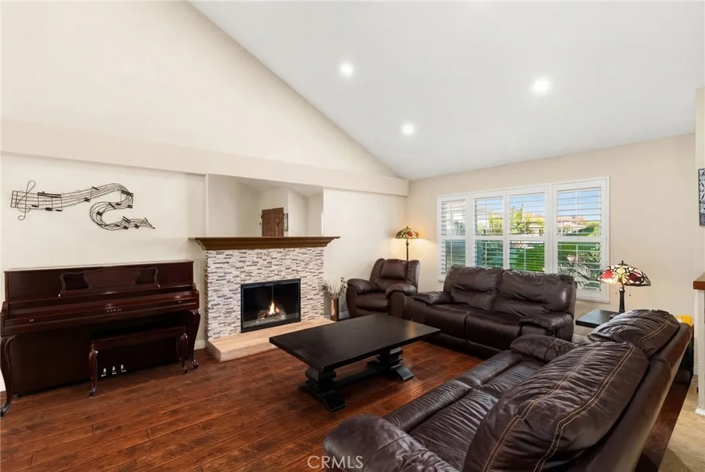 Beautifully upgraded home located in one of La Palma's most desirable locations. This thoughtfully improved property features a permitted downstairs addition (over $100,000 investment) with its own private entrance and brand new bathroom with dual sinks, a brand-new walk-in shower and a new walk in closet. The space is ideal for multigenerational living, guest quarters, orwith minor modificationscan function as a Junior ADU for potential rental income. The home showcases a fully remodeled kitchen designed for both style and functionality, featuring granite countertops, custom backsplash, sturdy white cabinetry, recessed lighting, an oversized center island, and a new stove. The kitchen flows seamlessly into the family room and living room with vaulted ceilings, creating a bright and open living space enhanced by custom cabinetry that matches the kitchen design. Upstairs, the primary suite enjoys views of the nearby greenbelt and playground, while two additional bedrooms are spacious and well-appointed with a jack and jill bathroom. Additional upgrades include newer dual-pane insulated windows, custom wood shutters and durable laminate wood flooring. The backyard is designed for entertaining, featuring an oversized custom patio and two separate covered patio areas, perfect for gatherings and outdoor relaxation. The garage includes EV charging capability, adding modern convenience. Located within an award-winning school district known for some of the highest test scores in the state, this home offers a rare combination of versatility, thoughtful upgrades, and prime location.