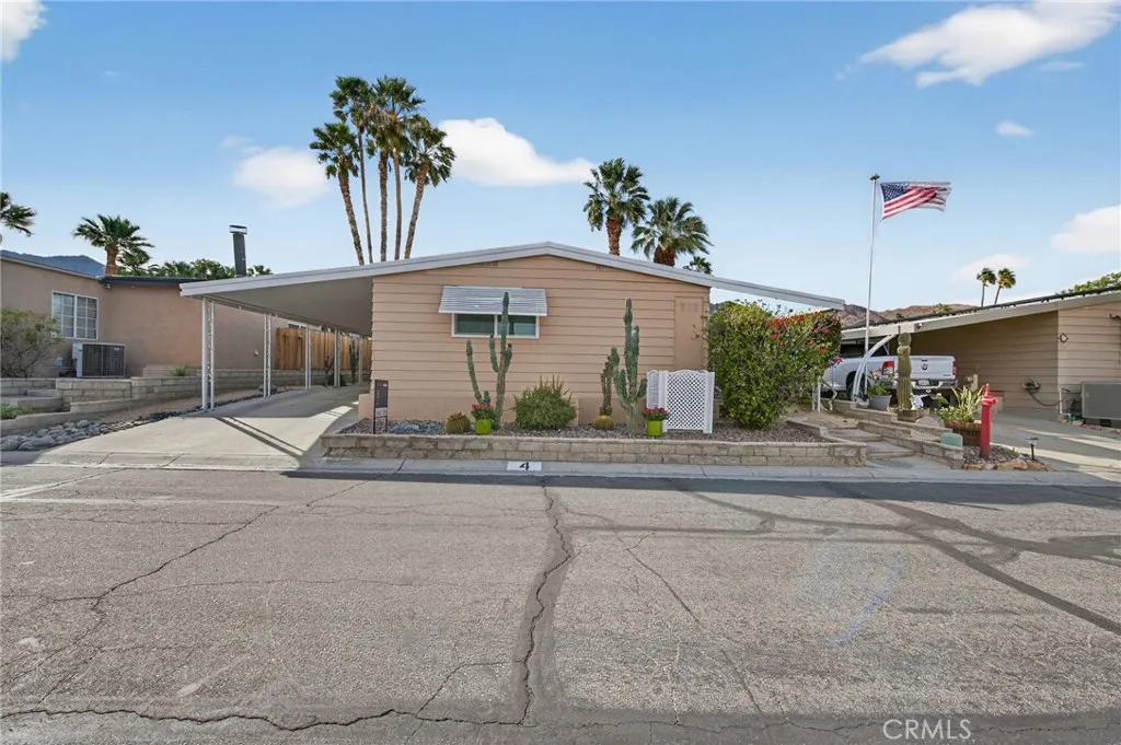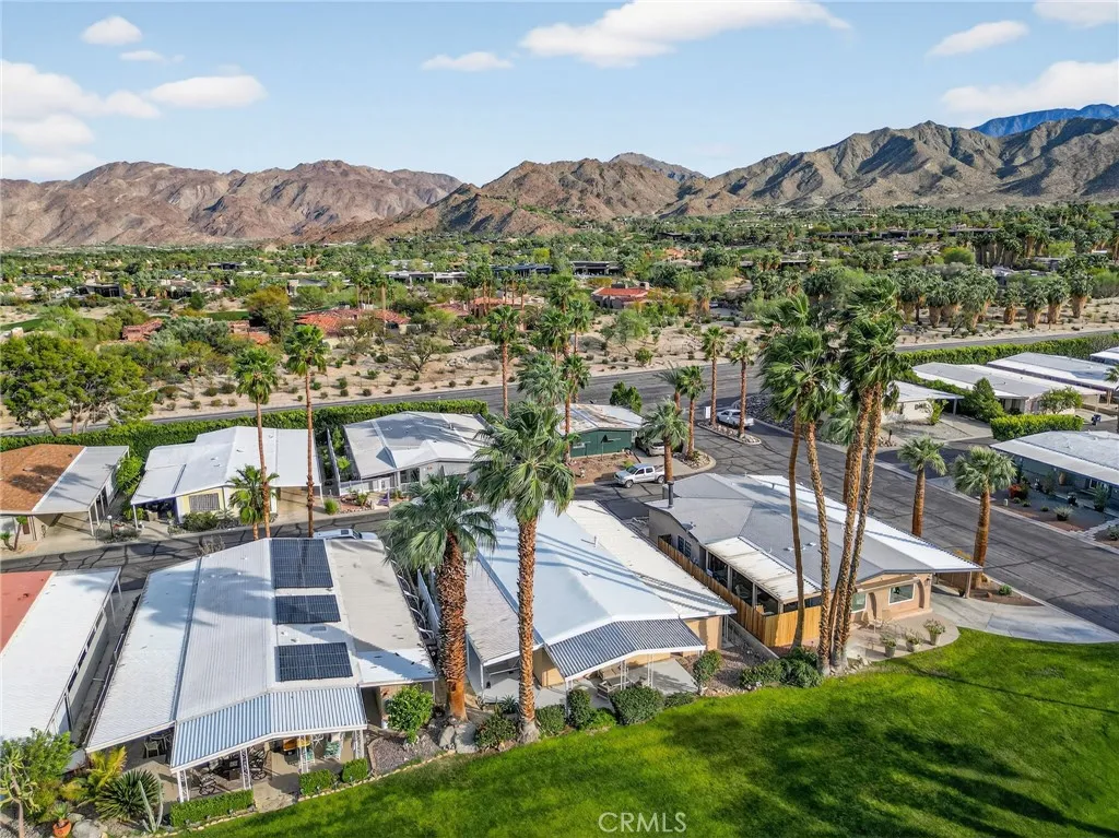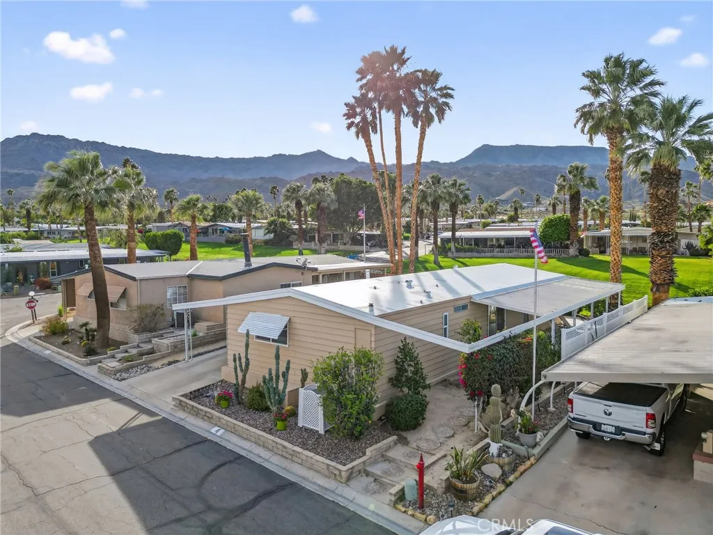 Welcome to this beautiful move-in ready 2 bedroom, 2 bath home offering 1,488 sq. ft. of green belt living in the highly desirable Indian Springs 55+ Mobile Home Park. Perfectly positioned just 2 miles from the iconic El Paseo Shopping District, where youll enjoy world-class shopping, dining, and entertainment right at your fingertips. All at a price that can't be beat. Nestled at the base of the mountains with breathtaking views of the Cahuilla Hills this lot sits on a lush greenbelt. The secluded covered lanai creates the perfect desert retreat. Step inside to a spacious air-conditioned living room showcasing updated double pane windows and Smart Wing remote controlled roller shades and new laminate floors. Additional upgrades include new hot water heater and two 70 vizio TVs. also included are an IKEA queen bed frame(new), IKEA dining room table and four chairs along with a Scandinavian Designs entertainment cabinet. Whether youre seeking a full-time residence or the perfect seasonal getaway, this home is what you're looking for! Park details: Privately owned, rent-controlled leased land (no land taxes). Subletting allowed after 1 year of residency. Park approval required prior to close of escrow. This is desert living at its finest stylish, turnkey, and ideally located.