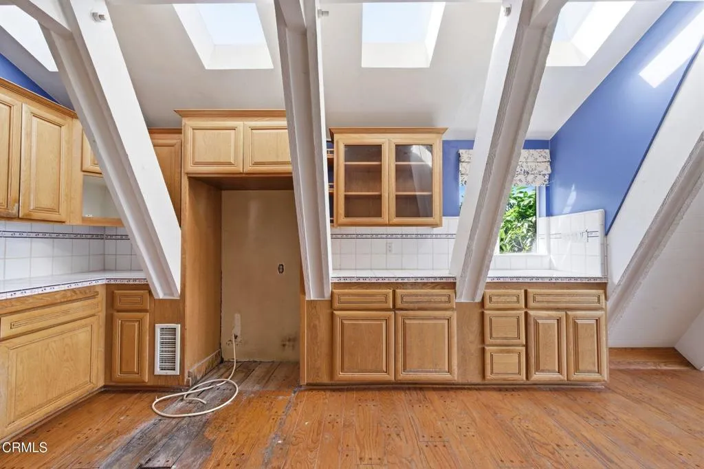 Spacious Custom Chalet in Prime South of the Boulevard Woodland Hills! This is truly a 'See to Believe' property, priced far below market as it awaits your cosmetic touches and personal vision. Originally built in 1964 but have plans dated 1990 showing current house. (plans available for review), this one-of-a-kind home offers an incredible opportunity you won't want to miss.Nestled among lush greenery, you'll feel like you're living in a private mountain retreat--yet Warner Center is just down the street. The home welcomes you with an expansive open floor plan featuring dramatic floor-to-ceiling windows that capture sweeping views and fill the space with natural light. High open-beam ceilings and hardwood floors create warmth and architectural character throughout.The large kitchen with skylights flows seamlessly into the Great Room, making it ideal for entertaining. The massive primary suite boasts soaring ceilings and a private deck with spectacular views, your own peaceful escape. A spacious family room with inlaid brick and wood detailing offers a separate entrance and direct access to the backyard, perfect for guests, extended family, or flexible living arrangements.Additional highlights include abundant storage space with a room below the home, plus a lush, private wooded backyard complete with expansive custom decking--ideal for relaxing or hosting gatherings under the trees.This is a major opportunity, you could not build this home for this price today. Bring your ideas and transform this extraordinary chalet into your dream home!