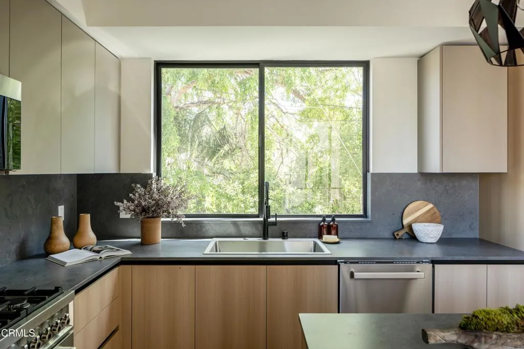 Introducing THE ELLWOOD, an exclusive new collection of five thoughtfully designed small-lot single-family homes where modern architecture meets elevated Los Angeles living. Each residence is separated by an air gap for enhanced privacy and individuality, offering the feel of a standalone home within a boutique community. This collection presents a curated selection of thoughtfully designed residences ranging from approximately 1,225 to 1,665 square feet, offering spacious 2 bedroom to 4 bedroom layouts with well-appointed, multi-bath configurations. Each home is crowned by a private rooftop deck showcasing sweeping views of the Griffith Observatory, the Hollywood Sign, and the western skyline. Interiors are appointed with designer finishes and premium Bertazzoni appliance suites, complemented by energy-efficient features such as solar panels, tankless water heaters, and modern split HVAC systems. Four homes include attached two-car garages, while one offers a convenient two-car carport. Ideally situated near Melrose Avenue and Larchmont Village, THE ELLWOOD places you moments from some of the city's best dining, shopping, and neighborhood charm--offering a rare opportunity to enjoy new construction living in one of Los Angeles' most vibrant and sought-after locations. Photos are of the model unit and may not represent the specific unit available for sale. All finishes and fixtures are similar throughout the development.