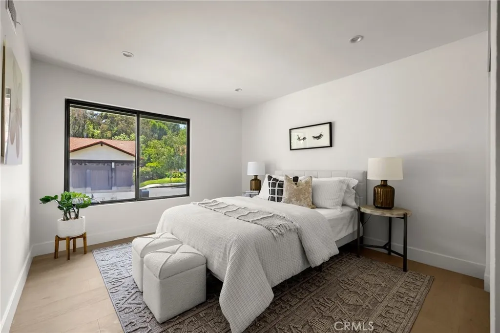 Welcome to this exceptional single-story home, thoughtfully reimagined and completely rebuilt from the studs up. Located west of Valley Circle in Woodland Hills and within the highly sought-after El Camino Charter School District, this nearly 2,500 sq ft residence sits on a flat lot of over a quarter acre, offering the ideal blend of privacy, luxury, and modern living. Featuring 4 spacious bedrooms and 3 beautifully appointed bathrooms, the home has been meticulously designed for seamless indoor-outdoor living. At the heart of the home is a chefs dream kitchen, equipped with top-of-the-line Thermador appliances, including a built-in refrigerator, a stunning 10+ foot island with abundant seating, plus an additional peninsula island with even more seating optionsperfect for both everyday living and entertaining.The adjacent family room opens to the private backyard through expansive multi-slide doors, creating a true indoor-outdoor flow. Outside, enjoy a built-in outdoor kitchen complete with BBQ and sink, ideal for al fresco dining and gatherings.The luxurious primary suite also features direct access to the backyard, an oversized walk-in closet, and a spa-like bathroom with dual vanities, a makeup station, and high-end finishes throughout. Designed for those with discerning taste, this home checks every boxincluding a 3-car garage and a floor plan that embraces both function and style. A rare offering of craftsmanship and design in one of Woodland Hills most desirable neighborhoods.