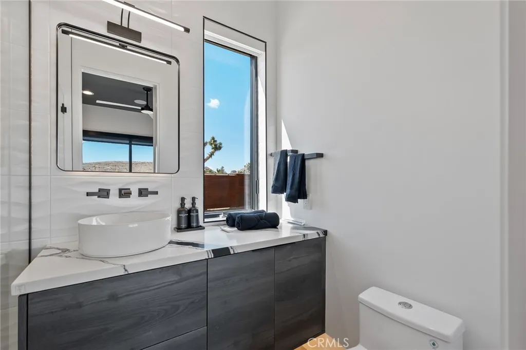 5165 Roy Rogers Road Modern Desert Masterpiece. In the high desert, silence, texture, and light becomes architecture. At 5165 Roy Rogers Road, design and landscape exist in perfect harmony a refined balance of modern form and natural stillness. Set on 1.26 acres in one of Pioneertowns most coveted settings, this three-bedroom, three-bath residence reimagines desert modern living. A bold white-and-black faade, framed by a breeze-block courtyard and signature orange gate, creates a striking first impression both grounded and sculptural. Inside, expansive walls of glass and polished concrete floors allow natural light to move effortlessly through the space. The open-concept great room flows into a designer kitchen featuring bespoke cabinetry, waterfall-edge stone countertops, and subtle mid-century influences that soften the clean architectural lines. Each bedroom suite offers its own sense of privacy and calm spaces designed for rest, reflection, and a seamless connection to the surrounding landscape. Thoughtfully curated and fully turn-key, the home blends elevated design with everyday comfort. Outdoors, a private courtyard centers around a sleek in-ground pool and spa, surrounded by native landscaping, sunlit patios, and a covered outdoor kitchen designed for year-round entertaining under endless desert skies. Ideally located in the heart of Pioneertown, just moments from iconic destinations like Pappy & Harriets and the Red Dog Saloon, this home captures the essence of modern living rooted in desert history. 5165 Roy Rogers Road where Palm Springs polish meets High Desert
