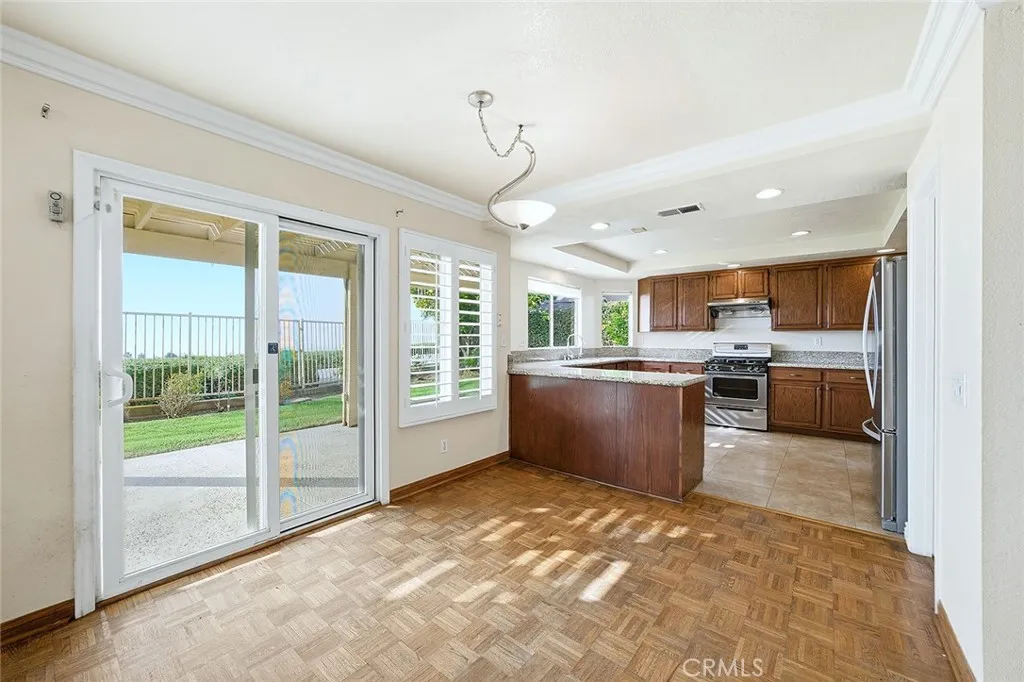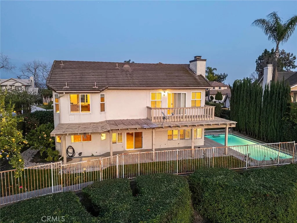 Spectacular 4-bedroom, 2.75-bath, 2,572 sq ft home on a quiet cul-de-sac in Via Verdes gated Regency Hills community, featuring sunset, city light, and mountain views. The expansive floor plan includes a first-floor bedroom, multiple living and dining areas, large windows throughout, and direct access to the backyard. The light-filled interior features soaring ceilings and a flowing layout designed for everyday living and entertaining. The kitchen includes granite countertops, stainless steel appliances, and a walk-in pantry, opening to adjacent living and dining spaces with scenic hillside views. The living room and family room each feature a fireplace, adding warmth and definition to the main living spaces. Upstairs, the primary suite is generously sized and includes a spa-style bath, walk-in closet, and private balcony with city light views. Two additional upstairs bedrooms provide versatile space for larger families, guests, or a home office. The private backyard features a resistance pool, ideal for exercise or relaxation while enjoying sunset views and surrounding hillsides. Mature landscaping, palm trees, and a wide driveway complement the outdoor setting. Additional features include indoor laundry and a 3-car garage providing ample parking and storage. Located in the heart of Via Verde, this home offers privacy, scenic surroundings, and proximity to parks, golf, and schools. Whether youre upsizing, relocating, or simply seeking a home that feels like a true retreat, this property is a rare find.