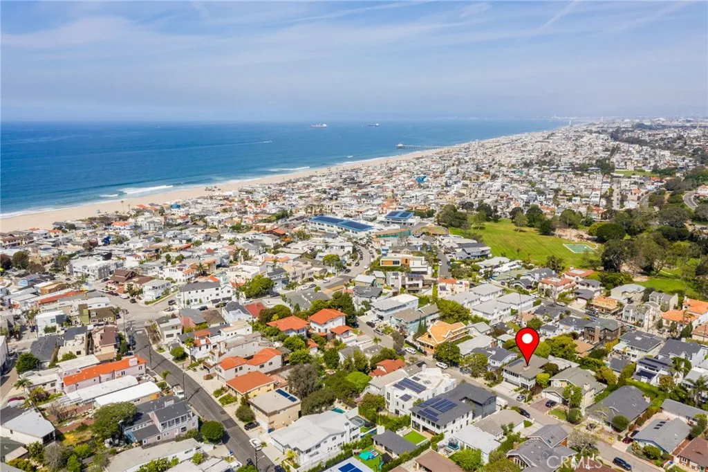 Coastal Living, Redefined Two Distinct Homes in the Coveted Sand Section of North Hermosa Beach. An exceptional opportunity awaits just steps from the sand, Valley Park, and the vibrant energy of Pier Avenue. Situated on an expansive 6,251 sq ft lot in one of the most desirable pockets of North Hermosa Beach, this unique property features two beautifully crafted residences a custom contemporary craftsman main home designed by the late Stan Anderson, and a charming mid-century modern back house offering privacy and versatility. The main home, built in 2013, showcases refined coastal style and offers 2,128 square feet of living space with 3 bedrooms, an office, two full bathrooms, and two half baths. Solid wood flooring, curated designer furnishings, and thoughtful architectural touches create a warm and elevated atmosphere throughout. The sun-drenched great room on the second level boasts vaulted ceilings, a cozy fireplace, and custom tri-fold doors that open to an expansive balcony ideal for effortless indoor-outdoor living. The chefs kitchen is a showstopper, featuring black soapstone countertops, a large island, custom cabinetry, luxury appliances, and a walk-in pantry. Off the living room is a small private office full of natural light. The serene primary suite offers a private retreat with a wrap-around balcony, spacious walk-in closet, and spa-like bathroom complete with heated floors, a soaking tub, and dual vanities. Downstairs, two additional bedrooms share a full bath and are anchored by a cozy den and built-ins, while the private backyard oasis is perfect for r