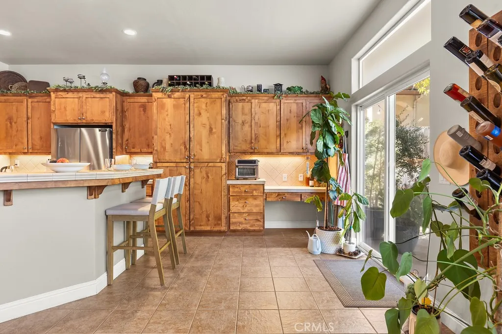 This pride of ownership home is located at the end of the cul de sac in the popular "Ridge" gated community! This prestigious neighborhoood provides a beautiful park with a playground, basketball courts, a baseball field and is just minutes from the Lake Oroville recreation area. This home is immaculate featuring a separate living room and an open great room with a large dining area and a dream kitchen! The kitchen has a large island, gorgeous alder cabinets with a coffee bar and built in desk area, tile counters & floors, stainless steel appliances including a gas range and a sliding glass door leading out to the back yard. The primary bedroom & bath are lovely with an oversized walk in closet complete with custom built-ins, a soaking tub, a separate shower and dual sinks. Other amenities include recessed lighting, tasteful fixtures including ceiling fans, vinyl plank wood floors throughout the living areas and all 5 bedrooms, custom blinds, 6" basebaords, an office with built in book shelves and OWNED SOLAR! The private back yard is fully landscaped with a large concrete patio and a quaint side yard with a garden area full of fruit trees including apple, dwarf lemon, white nectarine and peach! This property is a beauty and a treat to show!