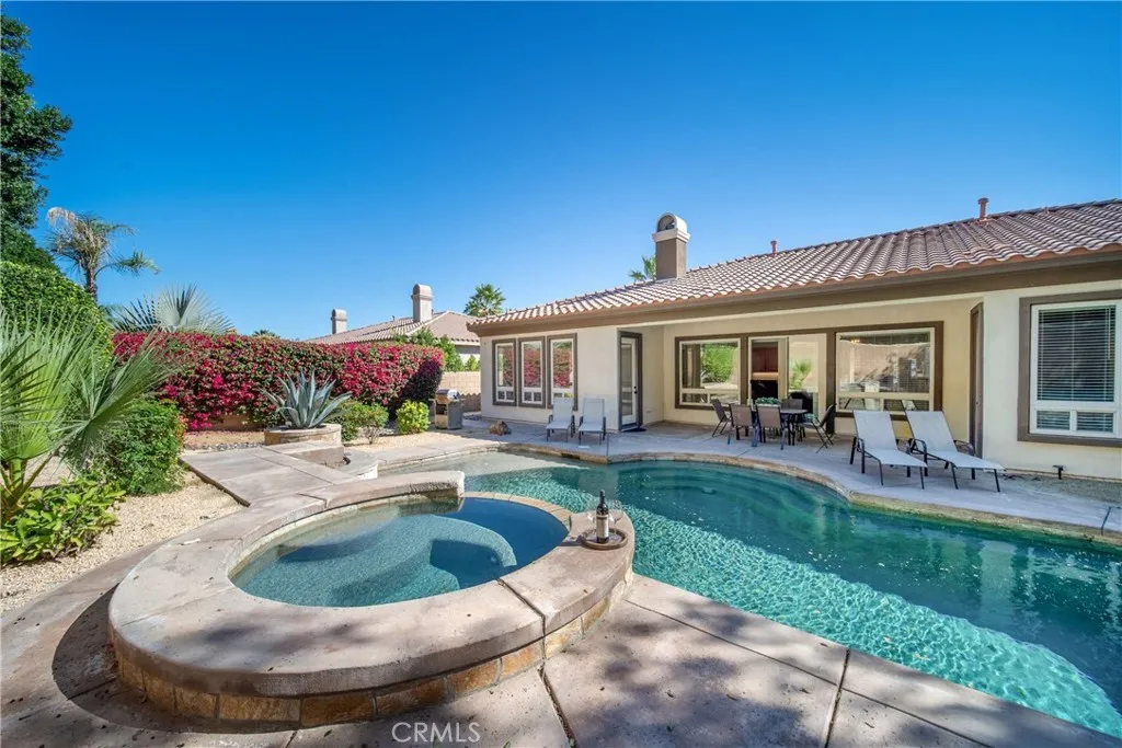 Escape to a spacious gated La Quinta retreat featuring approximately 2,900 sq ft of living space, 4 bedrooms (including an attached casita with private entrance), 3.5 bathrooms, and a private pool and spa. Designed for comfort and privacy, this desert home offers open-concept living, multiple dining areas, and a fully walled backyard ideal for relaxing under the sun. Perfect for families, golf groups, and extended stays. This well-maintained single-story home blends space, comfort, and classic desert style. The main living area welcomes you with high ceilings, natural light, and an open layout that flows seamlessly into the kitchen and dining spaces. A large sectional sofa creates a central gathering spot for movie nights or conversation after a day in the sun. The kitchen features: Granite countertops Stainless steel appliances Bar seating at the island Ample cabinetry and prep space Adjacent to the kitchen is a formal dining area as well as a casual breakfast nook, offering flexibility whether you're hosting dinner or enjoying a quiet morning coffee. Bedroom Breakdown: Bedroom 1 (Primary): King bed Bedroom 2: Queen bed Bedroom 3 (Attached Casita): King bed Bedroom 4: Two twin beds Primary Suite: The primary bedroom offers generous space and a tray ceiling detail, creating an airy feel. The ensuite bathroom includes dual vanities, a soaking tub, and a separate glass-enclosed shower, providing a comfortable retreat at the end of the day. The suite also features a private door with direct access to the backyard and pool area. Guest Bedrooms: The additional bedrooms are w