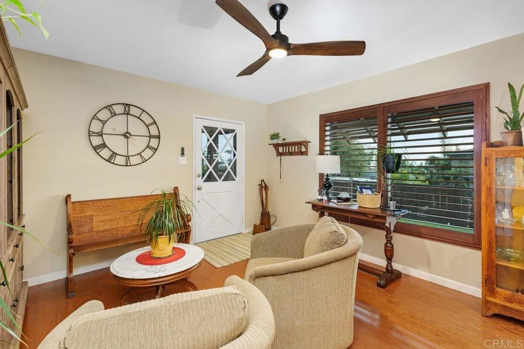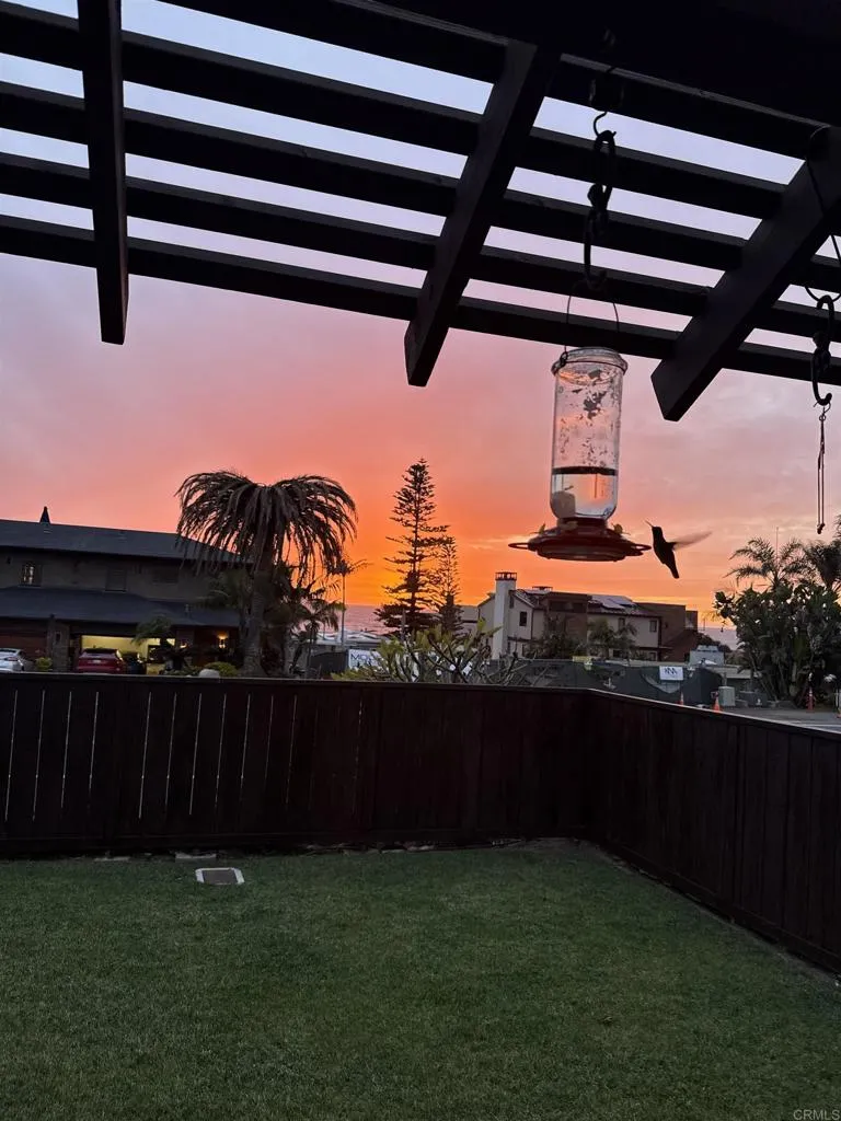 Ocean views in the lovely home situated in one of Carlsbads finest neighborhoods; Terramar, living here isn't just living in a home, its creating the ultimate San Diego lifestyle of beach, sunsets, and community. This charming two-bedroom, two-bath single-level beach home offers about 1,245 sq ft of comfortable living on a flat 6,600 sq ft lot. An open-concept living, dining, and kitchen area creates a seamless flow; the kitchen features granite countertops, upgraded appliances, and an abundance of beautiful cabinetry. Plantation shutters and hardwood floors throughout the main living areas add warmth and character. The bright primary suite fills with natural light and provides generous closet storage, while the well-sized second bedroom features 2 closets. An additional sunroom brings extra living area for family use, or adapts easily to a guest room, home office, or hobby space. Outside, a fully fenced private yard offers a peaceful retreat with a large patio, chicken coop and covered RV parking area The detached garage, now a Man Cave includes epoxy flooring, built in cabinetry, sink, granite counter tops. Great potential for home office or an ADU. A recently poured slab behind the garage with a shed provides additional storage. Recent improvements include new exterior paint, a brand-new roof and gutters, and refreshed front and backyard patios. As a Terramar resident, youll enjoy gated, private beach access to one of San Diegos premier beaches plus a community shower and reserved seating areas available only to the handful of Terramar neighbors perfect for relaxed beac