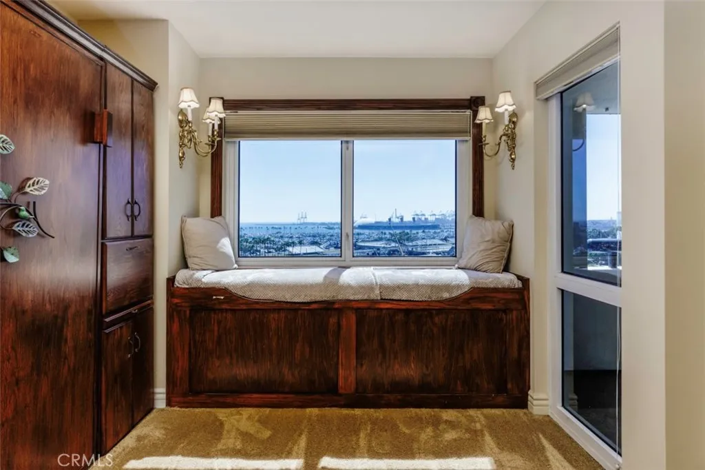 Live life with fantastic ocean views from the HarborPlace Tower! This two bedroom condo has been expanded by opening up the secondary bedroom into the living room making it functionally more of a one bedroom condo with an optional second sleeping area that is not enclosed. This makes the home flow better and help accentuate the beautiful ocean views which you can see from every room and your private balcony. This great condo looks out to the ocean, sandy beach, Queen Mary, marina and Catalina Island. Perfect to the Grand Prix. Enjoy the central heat, A/C and ocean breezes. This unit was extensively remodeled in the past with custom kitchen, new refrigerator and built-in bar. There is a murphy bed carefully tucked away in the secondary bedroom that is extended off Livingroom. Both bathrooms were redone with large soaking tub in the primary. Plenty of storage with walk-in closet, custom made bookcase plus a utility work area next to full sized washer and dryer. There are two parking spaces that are tandem. Luxury community with concierge service, gym, community room, meeting rooms and an inviting pool and sauna area. Live near all the beach action, marina, bike path, entertainment, restaurants, Shoreline, The Pike and night life.