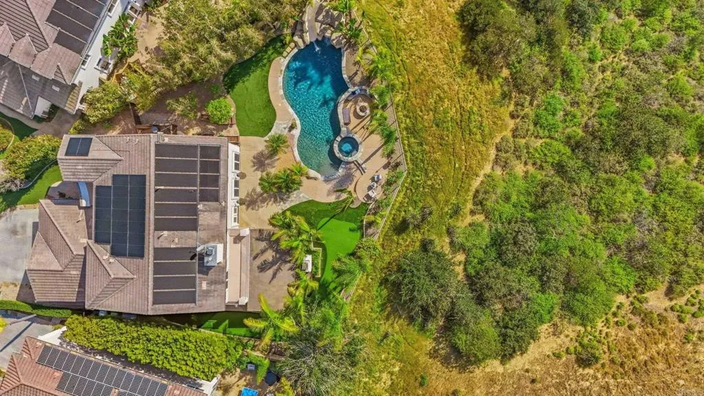 Tucked away at the end of a quiet cul-de-sac, this exceptional residence commands one of the most coveted and rarely available lots in the neighborhood. Positioned on an expansive pie shaped homesite with remarkable width and depth, the property offers an extraordinary sense of scale, privacy, and unobstructed panoramic canyon views, an offering that is increasingly rare in todays market. Designed to embody the essence of refined Southern California living, the backyard unfolds as a true private resort. A dramatic pool with a built in slide and grotto creates a striking focal point, while a sleek glass wall frames the canyon beyond, blurring the line between natural beauty and curated design. Multiple lounge and entertaining areas are thoughtfully positioned throughout, complemented by a custom granite topped bar with seating, ideal for hosting gatherings both intimate and grand. Thoughtfully balancing recreation with everyday livability, the grounds also feature two separate three hole putting greens, seamlessly integrated into the landscape for casual play and practice, along with a dedicated vegetable garden offering a farm to table lifestyle. This is more than a home, it is a rare opportunity to own a property that delivers scale, privacy, and a resort caliber lifestyle in one of the areas most sought after settings.