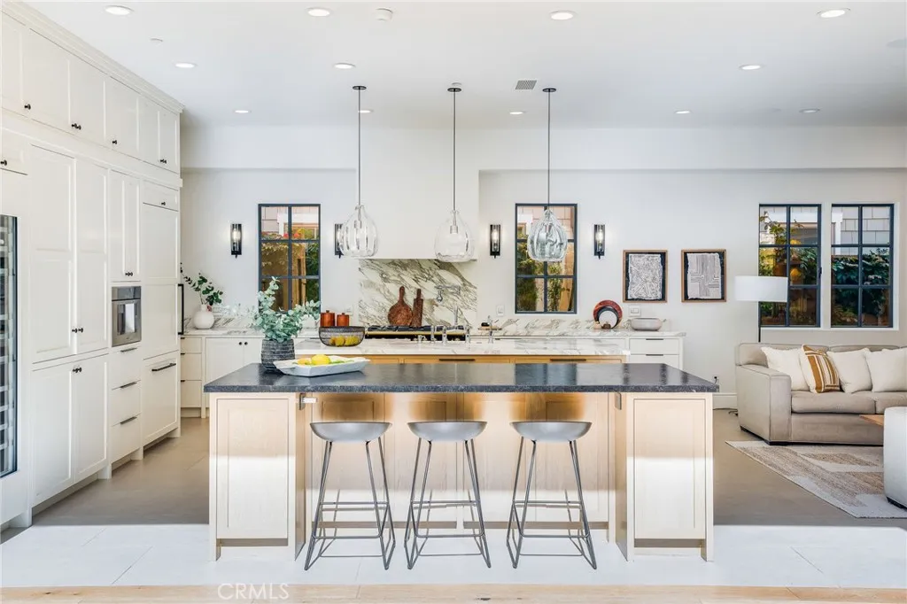 Beautifully reimagined, this recently renovated home offers nearly 6,000 square feet of refined living in the heart of Newport Heights one of Newport Beachs most coveted and centrally located coastal enclaves. With 5 bedrooms and 6.5 baths, this custom residence blends sophisticated design with a relaxed Southern California lifestyle defined by connection, comfort, and effortless indoor-outdoor living. Mornings begin in a sunlit kitchen designed for gathering, where marble and limestone countertops, dual oversized islands, and a statement range by La Cornue anchor the space. Fully outfitted with premium appliances by Thermador and complemented by a fully equipped secondary kitchen, the home is thoughtfully designed for both intimate family dinners and larger-scale entertaining. Expansive sliding doors by La Cantina open the living spaces entirely to the west-facing yard, creating a seamless transition to outdoor living while welcoming ocean breezes. Afternoons unfold poolside at the private spool or relaxing beneath the covered outdoor lounge with fireplace, television, and built-in BBQ a true extension of the home designed for year-round enjoyment. A gated front patio with fire pit and lush hedging offers yet another inviting space to gather with neighbors and friends. Upstairs you will find a luxurious primary suite featuring a serene retreat with fireplace, spa-inspired bath with Waterworks fixtures, and his and her walk-in closets. Additional highlights include a spacious bonus room, high ceilings, three fireplaces, oak and porcelain flooring, a richly paneled downsta