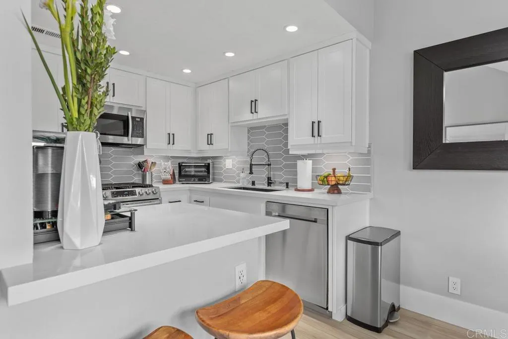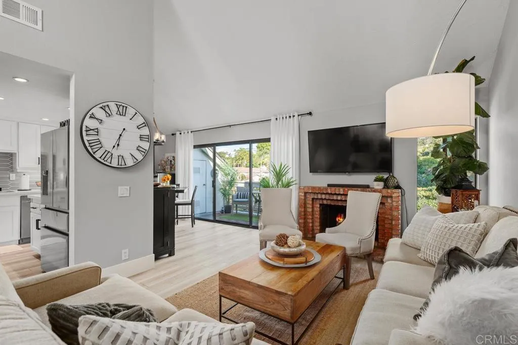 Beautifully updated top floor condo in the sought after Triple Crown community in Solana Beach. Featuring central heat and air conditioning, high ceilings, high end stainless appliances, vinyl floor, and cozy fireplace in the living room. Offering views of the hills to the east. I car garage plus parking pass for visitors. Walk to beach, Del Mar Race Track, shops, restaurants, etc.