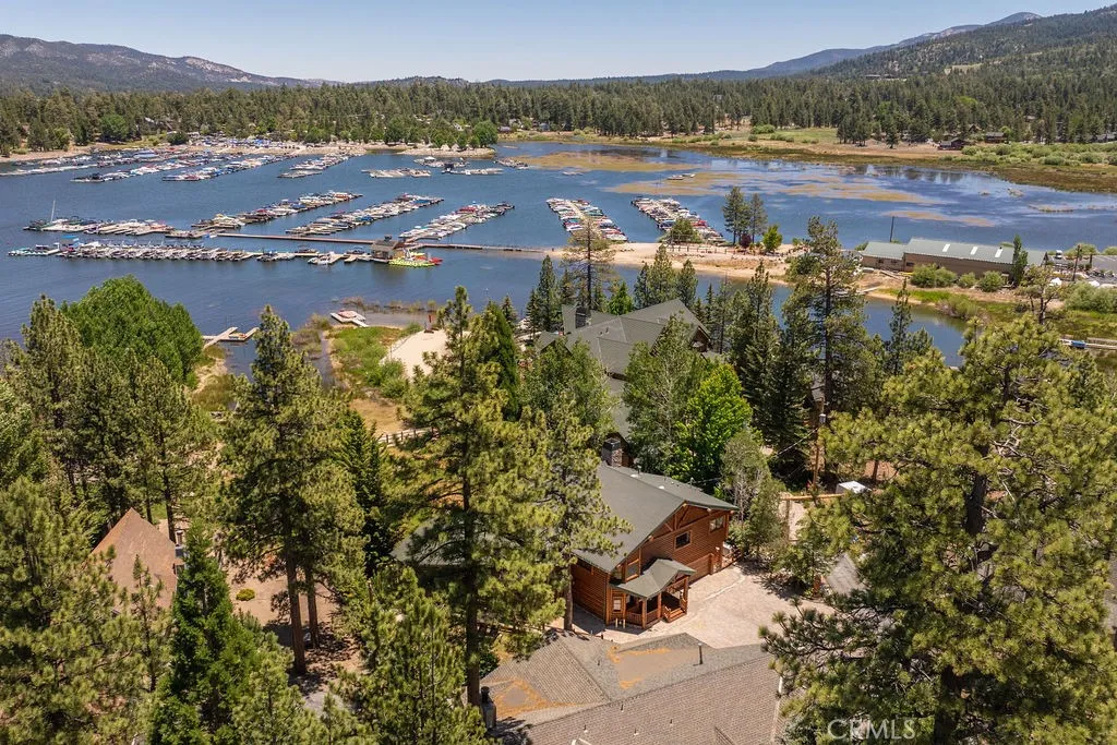Tucked away on a beautifully landscaped, lakefront lot just steps from Pleasure Point Marina, this luxury rustic cabin blends comfort, style, and that true Big Bear charm. With nearly 70 feet of lake frontage and over a third of an acre of usable landincluding a lush grassy backyardits the kind of place that invites both adventure and relaxation. Inside, youll find over 3,400 square feet of remodeled living space featuring 4 bedrooms and 4 bathrooms, including a spacious master suite. The open layout includes vaulted wood-beam ceilings, a stunning wall of glass framing the lake, a large loft with stunning views, and a cozy den/movie room perfect for winding down after a day on the water. Step outside to an expansive deck built for entertaining right on the lake. Theres a private spa tucked into the backyard, a sauna for those crisp mountain evenings, and two oversized garages with plenty of space for lake toys, gear, or extra guests. A Generac generator is already hooked up and ready to gothis place is built for year-round living and peace of mind. Whether youre watching the sunrise from the deck or hosting friends under the stars, this home delivers the lake lifestyle without compromise. A rare opportunity in one of Big Bears most coveted waterfront pockets.
