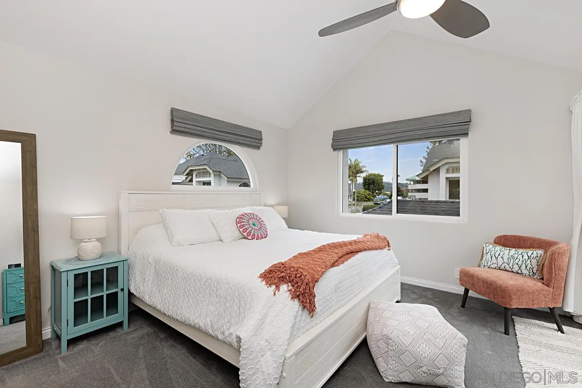 Coastal location west of Interstate 5, Its proximity to the beach, local dining, the race track, dog beach, Fletcher Cove, and the shopping destinations of the Cedros District & Flower Hill Mall. Newer windows enhance tranquility and efficiency, ensuring the home remains insulated and serene. With no units above or below and most sought-after floorplan in the Triple Crown community. comprehensive and thoughtful upgrades, this residence sets the stage for an exquisite living experience. Boasting high vaulted ceilings and an abundance of natural light, the space feels open and airy. Central heating & air, an oversized single-car garage plus an assigned parking space, and access to deluxe community amenities such as a pool, spa, and sauna