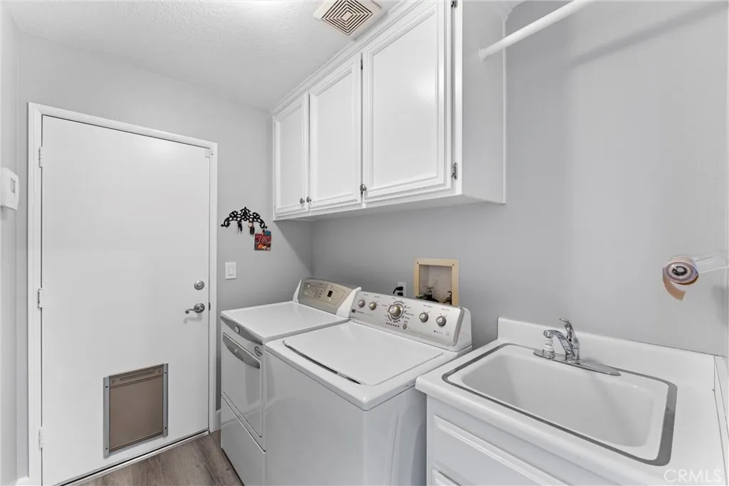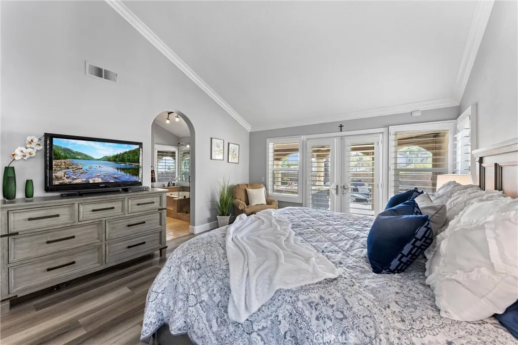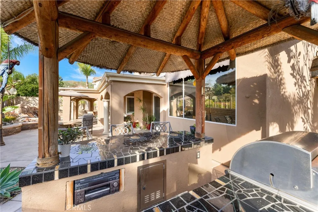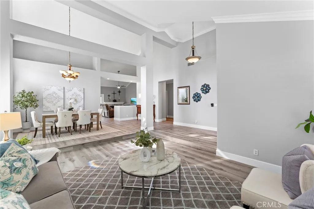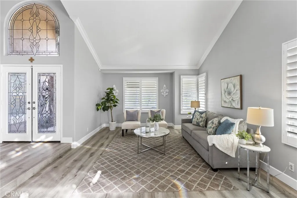 This one truly checks all the boxes. Nestled on a quiet cul-de-sac, this beautifully maintained single-level home offers 2,421 square feet of thoughtfully designed living space, featuring 4 bedrooms, 2.5 bathrooms, and a 3-car garage plus RV parking potentialthe perfect blend of comfort, functionality, and timeless style. A backard oasis perfect for entertaining with a pool/spa combo with waterfalls and jets, covered patio and palapa with built in bbq and bar area. Curb appeal shines with a brick front porch and entry, welcoming you through double doors with stained glass, a grand chandelier, and an elegant arched window. Inside, light-filled living spaces showcase vaulted and cathedral ceilings, crown molding, and plantation shutters throughout. The formal living room features soaring vaulted ceilings, while the formal dining room impresses with cathedral ceilings, a statement chandelier, and a large arched window with secure glass and plantation shuttersideal for entertaining. The chefs kitchen boasts vaulted ceilings, crown molding, quartz countertops, stainless steel appliances including a double oven, stainless sink, ceiling fan, plantation shutters, and custom shades. The kitchen opens to the adjacent family room, complete with a ceiling fan and a gas fireplace with mantle and hearth, creating a warm and inviting gathering space. The primary suite is a private retreat featuring vaulted ceilings, crown molding, mirrored closet doors, plantation shutters, and French doors leading to the backyard. The spa-inspired primary bathroom includes a soaking tub, large walk-in sh