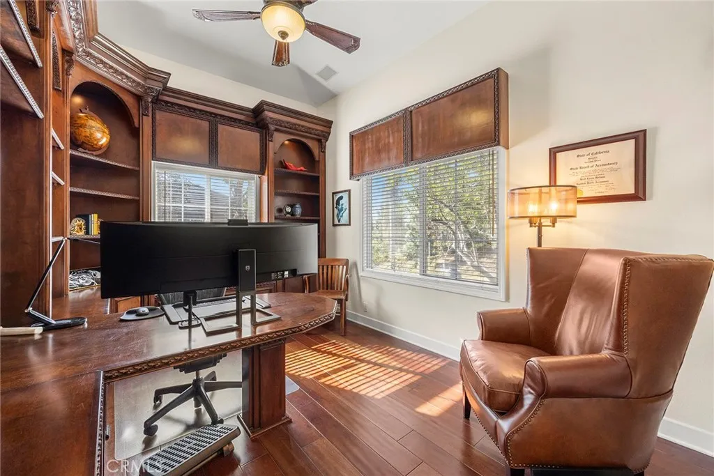 Your lifestyle is about to be upgraded in this exceptional Toll Brothers estate in Yorba Linda! Set on nearly half an acre with peaceful hillside views, this home offers a rare sense of space, privacy, and everyday luxury where relaxed mornings, lively gatherings, and quiet evenings all feel effortless. Arrive to timeless curb appeal and a welcoming double-door entry that instantly feels like home. Inside, sunlight pours through expansive windows and French doors, filling the home with warmth and connection to the outdoors. Whether hosting celebrations or enjoying quiet moments, the thoughtfully designed layout creates a natural flow between open living spaces and private retreats. The versatile floor plan features 5 bedrooms, an executive office, loft, 4.5 bathrooms, and dual staircases, designed to adapt to your lifestyle. The main level offers a private en-suite bedroom for guests, a dedicated office, formal and casual living spaces, and a kitchen that brings everyone together. Upstairs is the perfect split floor plan with the primary suite and retreat separate from the loft and additional bedrooms creating a more comfortable and intimate space. The pivotal point of the home is the kitchen, designed for connection and creativity and featuring floor to ceiling white cabinetry topped with granite, built-in Sub-Zero refrigerator/freezer, top of the line stainless appliances and open to the family room entertainment space. The massive family room invites you to unwind by the fireplace or entertain with ease with plenty of seating and a large built-in entertainment center. Yo