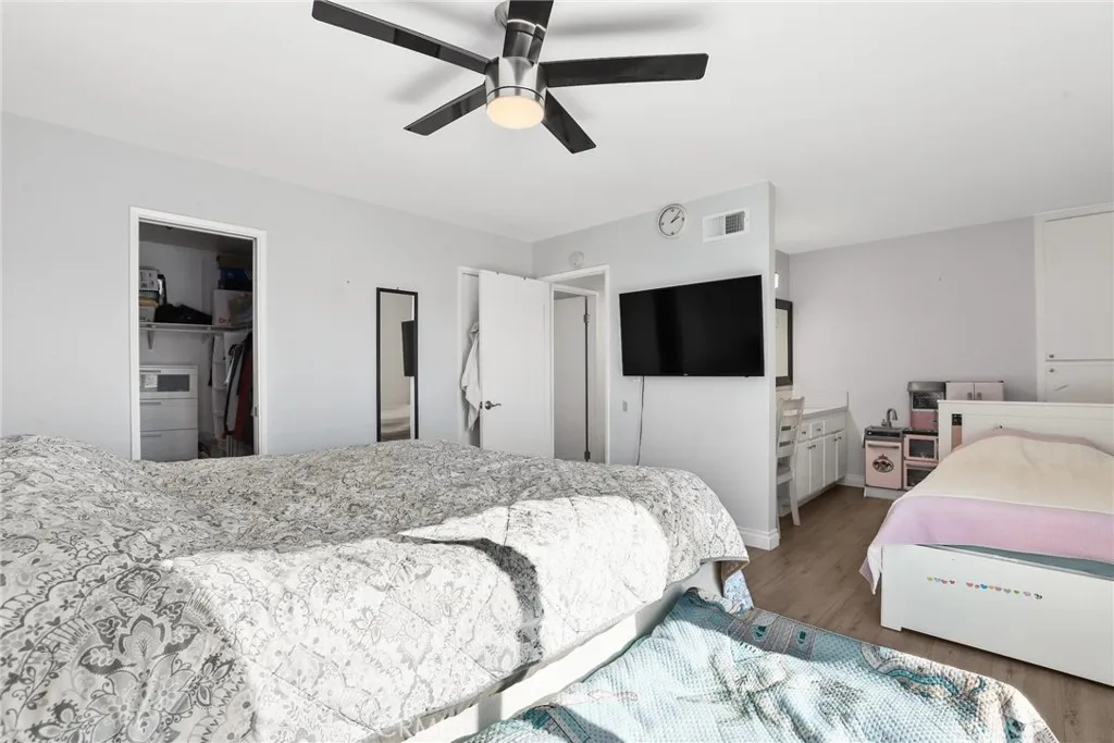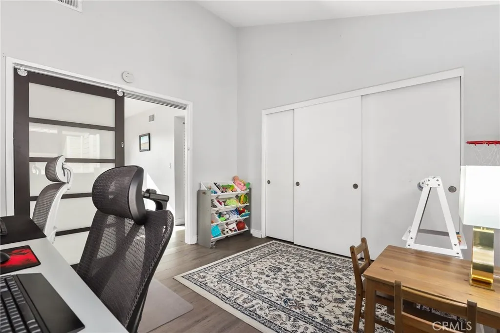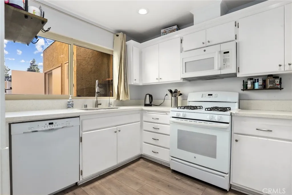 Beautifully renovated top-floor end-unit townhome in highly desirable Cypress with top-rated schools. This bright 2-bedroom, 1 bath (with additional vanity in the primary suite) home features vaulted ceilings, floor-to-ceiling windows, laminate flooring, updated lighting, and a cozy living room fireplace. The updated kitchen offers quartz countertops, recessed lighting, and bright windows in the dining area. Sliding glass doors open to a private deck, and the home includes in-unit laundry and 2 car private garage. The primary bedroom features a walk-in closet. Resort-style community with serene ponds and streams, garden paths, pool, spa, BBQ area, and guest parking. HOA includes water and trash. Conveniently located near Arnold Cypress Park with easy access to the 91, 5, and 605 freeways.