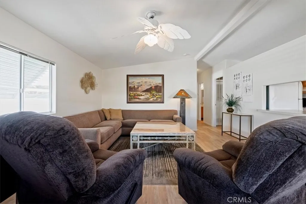 Located in the desirable Country Club Mobile Estates 55+ community, this furnished 2004 manufactured home offers 2 bedrooms, 2 full bathrooms, and beautiful mountain views. Community amenities include pool, spa, and clubhouse, creating a peaceful, resort-style environment. Conveniently situated across from Hawks Landing Golf Course and near the Yucca Valley Senior Center. RV/boat storage available for $50/month. Interior features include vaulted ceilings, durable tongue-and-groove plywood flooring, new carpet, new luxury vinyl flooring, and fresh interior paint. Functional layout with two full bathrooms and stackable washer and dryer included. Home is being offered furnished as shown, and includes multiple items of value such as large flat-screen Roku TVs, adjustable split king bed, and additional furniture (buyer to verify). Pet-friendly community (buyer to verify park rules). Move-in ready and professionally cleaned.