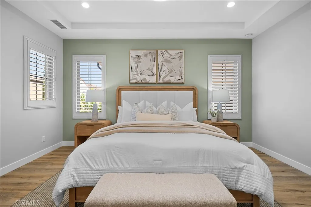 Located at the Village of Stonegate, this detached Mendocino home features a functional 4-bedroom, 4-bathroom floor plan. The residence is characterized by an open-concept layout and includes a sunroom converted into a dedicated office space, providing a quiet environment for remote work. The main level is further enhanced by a conveniently located bedroom and a full bathroom, suitable for guests or multi-generational needs. The second floor opens to a notably sized loft that serves as an ideal secondary office space, complete with a dedicated desk space for study or administrative use. Two additional secondary bedrooms are situated upstairs, each featuring its own en-suite bathroom. The primary suite includes a well-appointed bathroom with dual sinks, a soaking tub, a step-in shower, and a walk-in closet. With brand-new vinyl flooring, fresh interior paint, epoxy garage flooring, and modern lighting upgrades, this home presents a bright, like-new appearance that sets it apart from others. Beyond your doorstep, residents enjoy an exceptional location within walking distance to Stonegate Elementary School, a recipient of multiple Blue-Ribbon and California Distinguished School awards. And easy access to community amenities, including swimming pools, spas, parks, clubhouses, tennis courts, and playgrounds. This home is also served by top-rated Sierra Vista Middle School and Northwood High School. Outdoor enthusiasts will appreciate the close proximity to the Jeffrey Open Space Trail for hiking and cycling, as well as easy freeway access for a seamless commute.