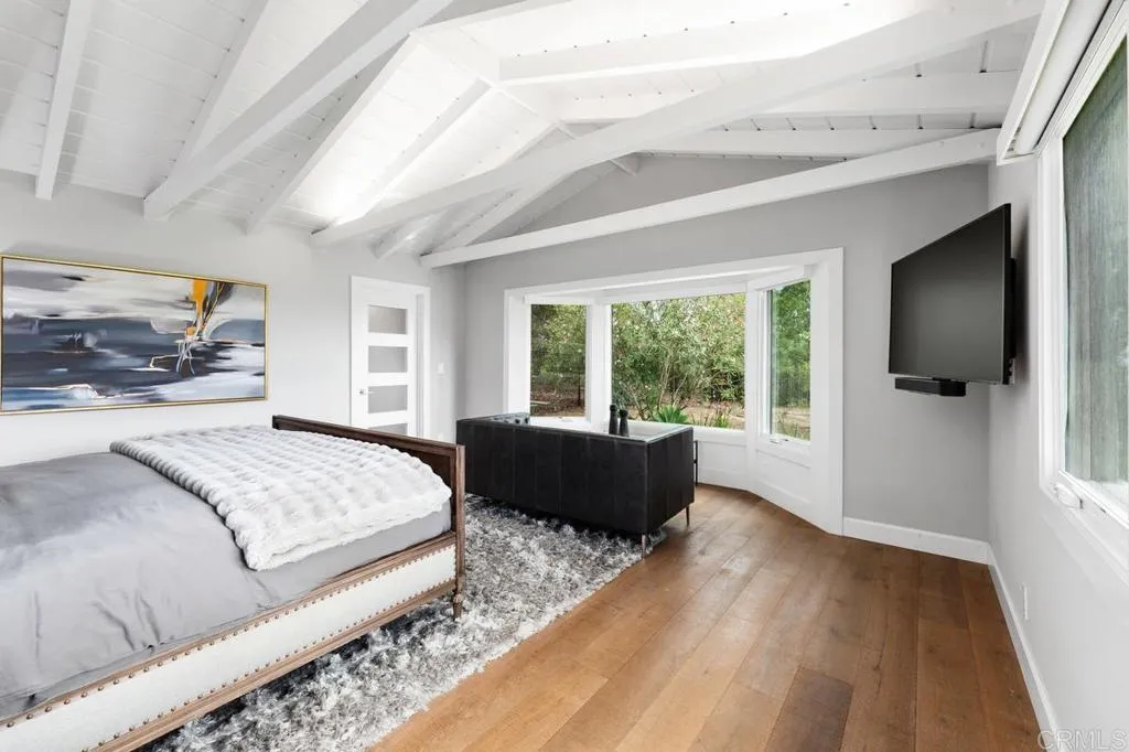 Located just minutes from the heart of the Rancho Santa Fe Village, this exceptional single story VIEW home boasts 4 bedrooms and 4 baths. Enter through new Dutch Door Style entry doors to a light and bright open floorplan featuring sliding glass doors throughout. Additional amenities include a fabulous gourmet kitchen with top of the line stainless appliances and large center prep island. The butler's pantry with secondary stainless sink, pantry storage and abundant additional cabinetry is a great addition to the kitchen. The primary suite is ideally located for ultimate privacy and features a beautiful ensuite bath, spacious walk-in closet and large windows to capture the picturesque views. Entertaining is a delight from the Lanai while enjoying indoor/outdoor living. The spacious patio is enhanced by attractive stainless cable railing fencing. The gorgeous backyard showcases mature trees, fencing, lush landscaping and south facing orientation for ultimate sunlight. The long private stone driveway with center island rose garden and beautiful fountain leads to a two car garage with vast built-in cabinetry, cedar closet, additional storage closet and car charger. There is also additional parking available. Situated on a 3.37 acre Covenant parcel this pristine home offers privacy and serene living. A MUST SEE!