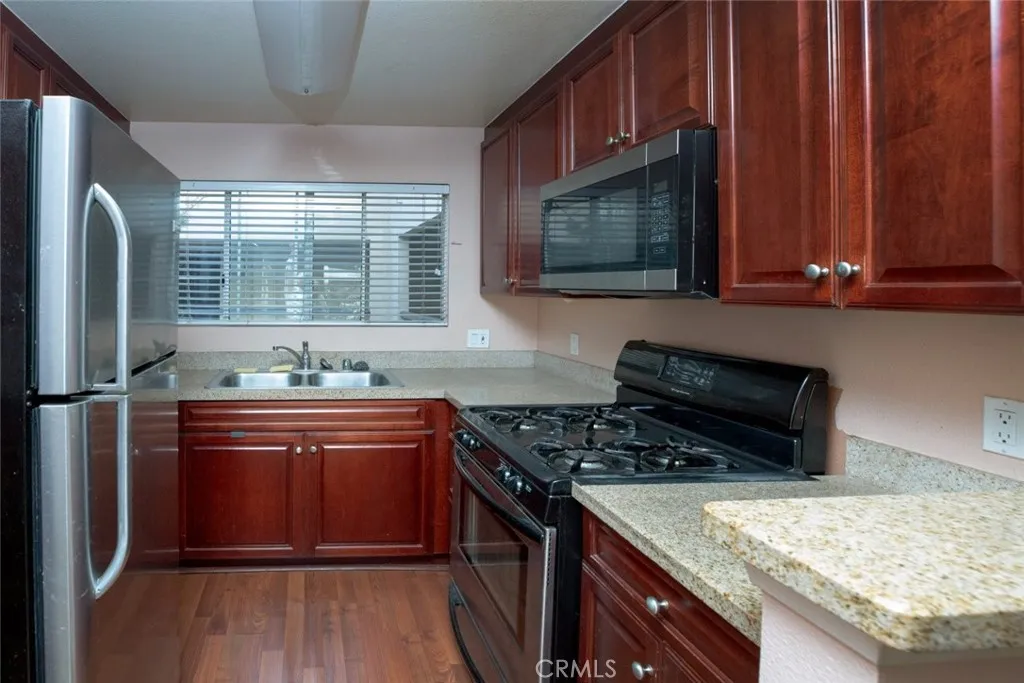Experience the pinnacle of resort-style living in this upgraded 2-bedroom, 2-bathroom condo in the Metropolitan community. The unit boasts a spacious balcony for outdoor relaxation and a stylishly upgraded kitchen featuring modern cabinets, granite countertops, and stainless steel appliances, including a gas oven, range, built-in microwave, and dishwasher. The bathrooms are equally elegant with granite countertops, and the convenience of an in-unit washer and dryer adds to the appeal. Private parking is included with two designated spots accessible from the Owensmouth entrance. Nestled in a safe and quiet neighborhood with beautiful landscaping, this condo is located in the quieter section of the complex, away from freeways and busy roads. Its location provides unparalleled convenience, within walking distance of Warner Center Park, The Village, AMC theaters, restaurants, and the Metro line. Residents enjoy a variety of amenities, including four swimming pools, a spa, a sauna, a fitness center, six lighted tennis courts, two racquetball courts, a children's play area, 24-hour security, and secured buildings. This property offers the perfect blend of luxury, comfort, and convenience in an unbeatable location.