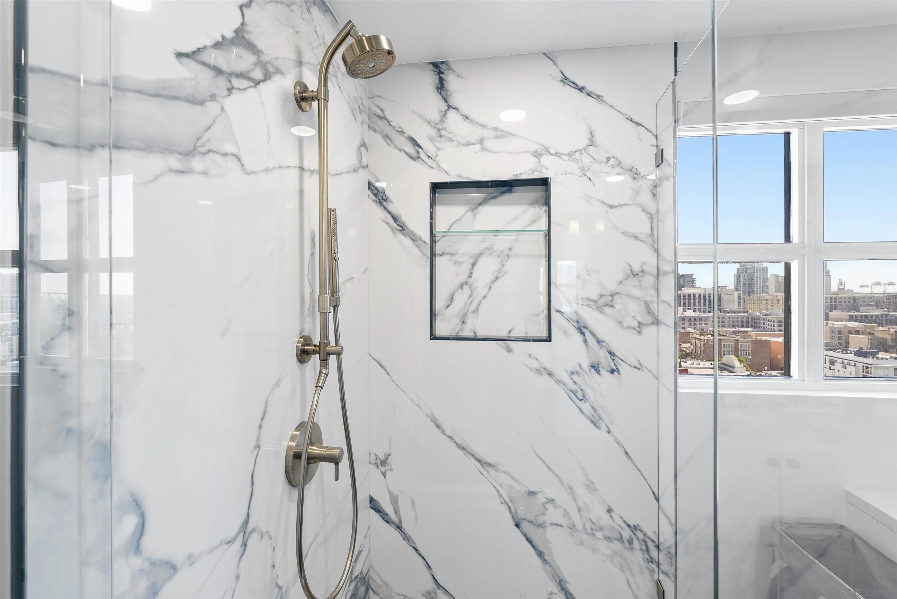 Sweeping panoramic bay and city skyline views define this beautifully remodeled Marina District residence. This spacious 2-bedroom, 2-bath home features two private patios ???????? positioned for stunning water views and seamless indoor-outdoor living. Over $200,000 in upgrades (2023) include custom cabinetry with expanded storage, continuous flooring, and updated lighting and plumbing fixtures. The redesigned kitchen offers quartz countertops, designer tile, a generous pantry, and high-end smart appliances, including an Alexa-enabled refrigerator and smart oven. Additional highlights include a custom walk-in closet, fireplace, blackout shades, Wi-Fi/Bluetooth color-changing ceiling lights, and two secured parking spaces, each with its own EV charger. A rare opportunity in the heart of the Marina District.