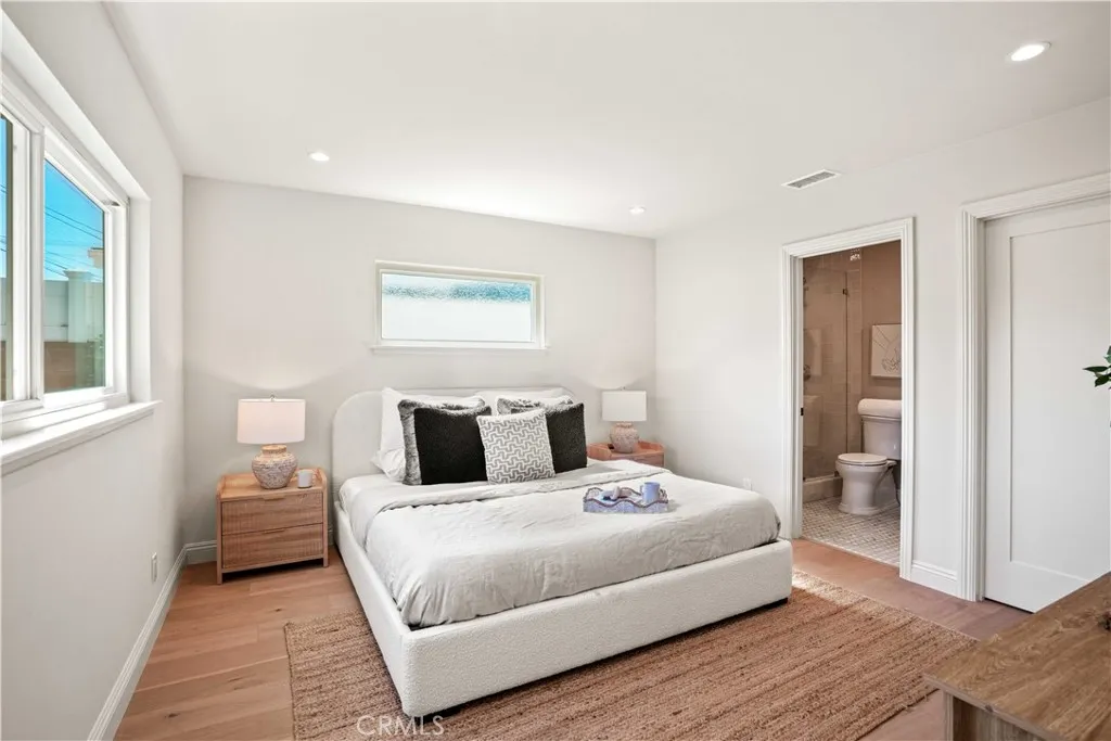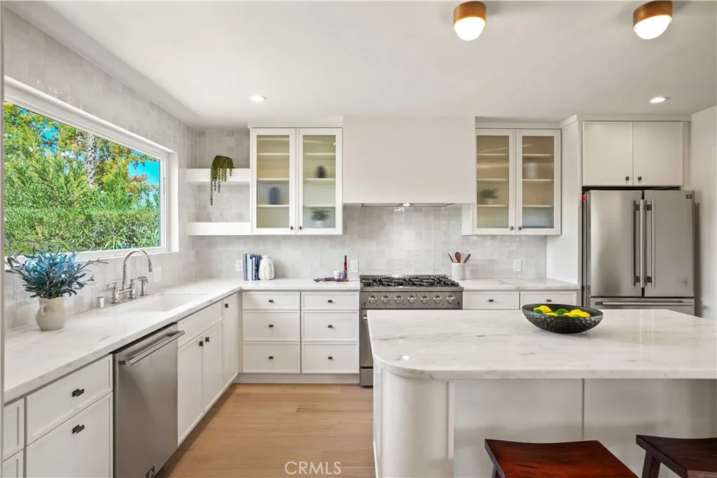 Welcome to this beautiful single-story showplace, nestled in the desirable "Encino Village" neighborhood. This thoughtfully reimagined, light-filled home showcases gorgeous hardwood floors that flow seamlessly throughout. The inviting living rm boasts an open floor plan with high ceilings, recessed lights & a large formal dining room bursting with natural light. The stunning chef's kitchen comes equipped with beautiful custom (soft closing) cabinets, gorgeous quartz countertops, designer tile backsplash, professional-grade stainless-steel appliances & large center island. The primary bedroom w/ walk-in closet offers a sanctuary with a spa-like ensuite bathroom that includes a designer vanity, custom tile/fixtures, and a huge walk-in shower. The secondary bedrooms are good size and are adjacent to the remodeled hallway bathroom, which includes stylish tile, new vanity & relaxing soaking tub. Step outside and enjoy the lush grounds within your private backyard, including... stamped concrete decking, mature foliage & rolling grass that is great for entertaining all your family and friends. With the upgraded HVAC system, dual paned windows and individual laundry room... this GEM is the one you have been waiting for!