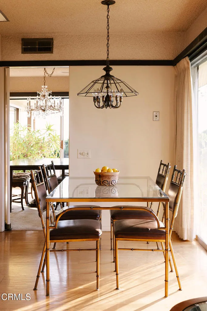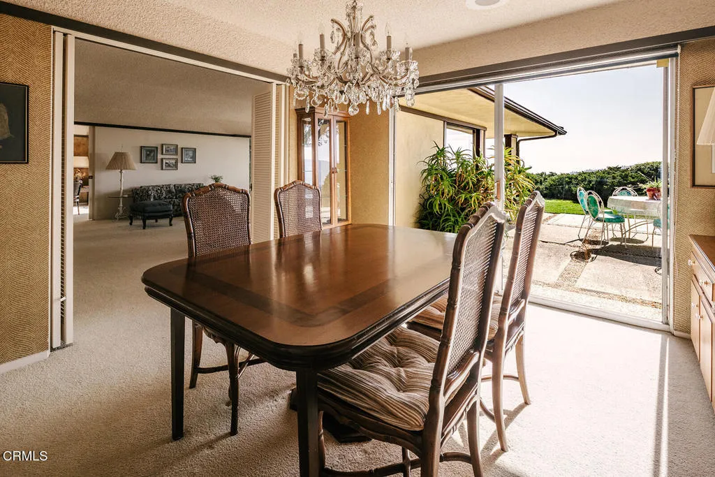 Perched at the end of a quiet cul-de-sac in La Canada Flintridge, 5703 Catherwood is a classic mid-century home defined by privacy, architectural integrity, and extraordinary 180-degree views. The vistas stretch across mountains and open sky, and on clear days extend all the way to the Pacific Ocean--an ever-changing panorama that anchors the home and elevates daily living. Walls of glass and nine sliding doors create exceptional indoor-outdoor ease, opening to dedicated patios, and framing the views from nearly every room. A generous living room takes full advantage of the outlook, offering a dramatic yet serene space for gathering and entertaining, while a separate dining room provides a more formal setting, also oriented toward the scenery. The kitchen flows into a family room, both connecting directly to their own patios--ideal for casual living, morning coffee, and effortless entertaining.The layout includes three bedrooms plus a den that could easily function as a fourth bedroom, office, or studio. Set on an expansive lot with generous flat outdoor space, the property feels secluded and peaceful, with multiple areas to enjoy the landscape and views. Rich with numerous original mid-century details and strong architectural bones, this is a rare opportunity to thoughtfully bring a special home up to date while preserving its timeless design. With unmatched views, privacy, and potential, 5703 Catherwood is truly something special.