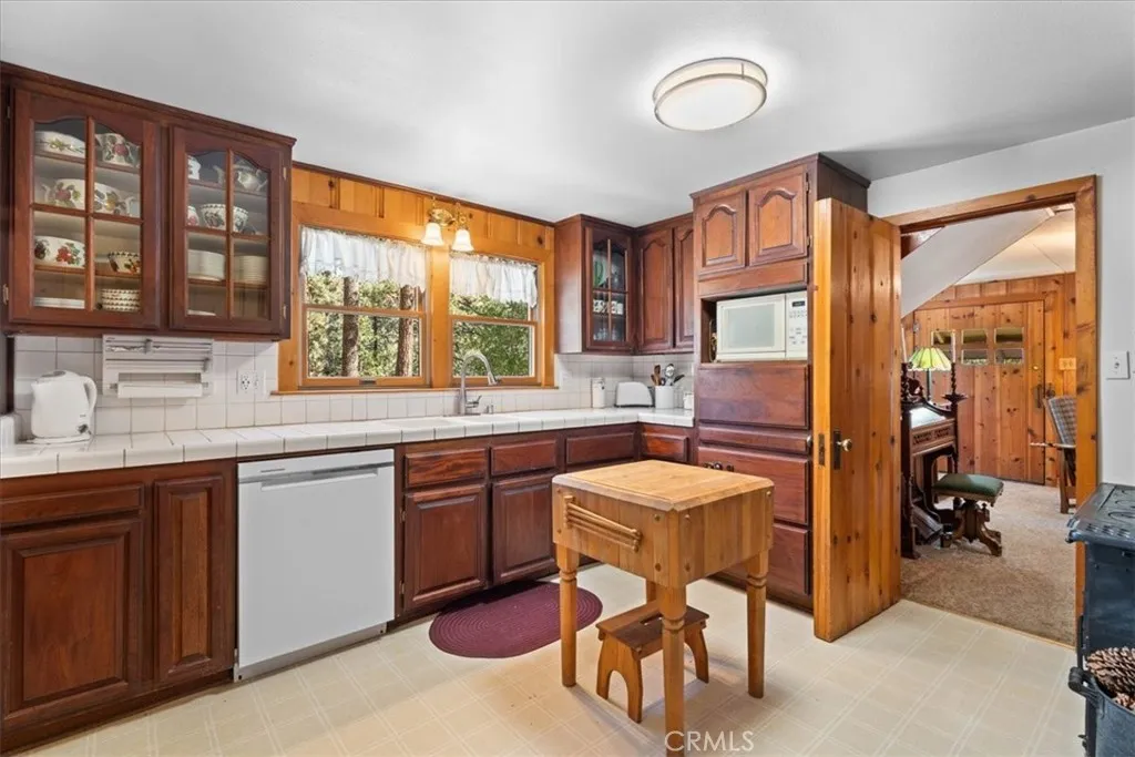 The impeccably maintained historic Logsdon estate, where memories of four generations have been made, is available for sale and on the market for the first time ever! This 3 bedroom 2 bathroom full time cabin offers an abundance of mountain charm, modern updates and a functional floor plan that is sure to please. Originally constructed in 1932 by master craftsmen, the house is on an elevated corner lot perfectly situated to offer easy walking options to the lake and quaint village, views of the mountains, and a park like setting that offers peace and tranquility. Inside, the large custom front door provides a grand entry to a large living room with a native rock fireplace. Knotty pine tongue and groove material adorns the walls in authentic mountain style. The large country kitchen is fully equipped with dishwasher, gas range, and ample counter space for holiday meals or just the weekend round of flapjacks. The kitchen also includes a functional antique cast iron cook stove. The indoor laundry is conveniently located around the corner, along with main floor bedroom and remodeled bathroom, bringing form and function together seamlessly. The newly-remodeled bathroom features a glass enclosed shower and hand made Moroccan Zellige tile. All interior doors have been button built and offer excellent craftsmanship. Upstairs, the wide staircase and landing lead to two more bedrooms, each with plenty of room and offering tree top views of the natural Jeffrey and Ponderosa pines. Upstairs is also where you will find the second bathroom, with the highlight being the majestic claw foot