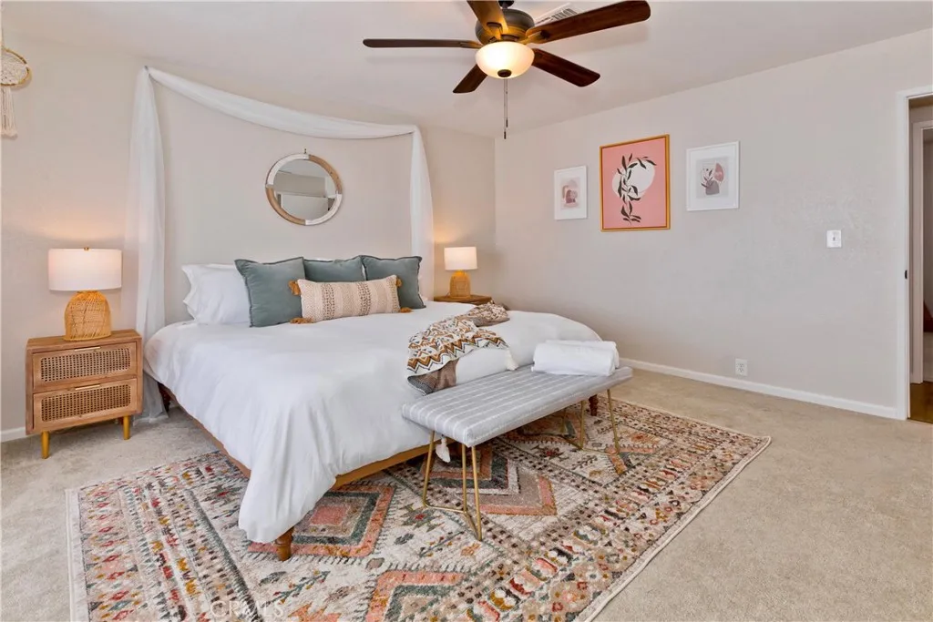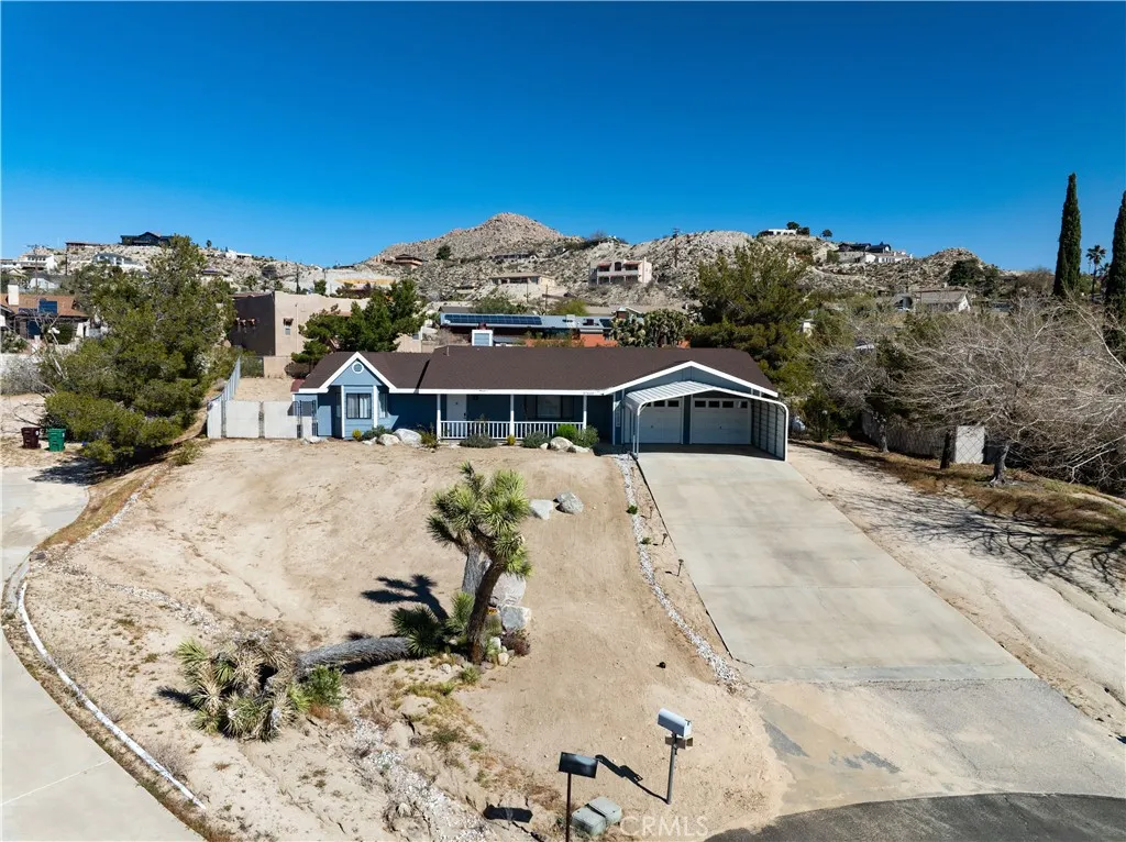 Price Reduced! Gorgeous 3 Bedroom, 2 Bathroom Home with Views in One of the Most Coveted Areas of the Hi-Desert. Located on a cul-de-sac in the highly sought-after Western Hills Estates area of Yucca Valley and renovated with beautiful finishes, this wonderful home is sure to please. As you drive through the neighborhood, you'll realize why this area is so popular, passing by well-cared-for homes surrounded by stunning views of boulders and mountains in the background. Pulling into the -acre lot, youll notice a chic blue faade with white trim, a double garage door, and mature Joshua trees. A covered patio welcomes you as you stop to admire the phenomenal views of the cityscapes along with the majestic mountains. Stepping through the front door, youll find a character-driven floor plan featuring a stunning hand-painted mural, stylish wood laminate flooring, a tasteful color scheme, decorative shelving accents, and a beautiful fireplace that ties it all together. Designed with entertaining in mind, the upgraded and fully equipped kitchen is spacious, inviting, and stylish. It comes equipped with quartz countertops, tasteful kitchen cabinets, and stainless steel oven and dishwasher! Just off the kitchen is the large dining room, which could easily be utilized as a den. Each guest bedroom has plenty of space, and the guest bath features wood tile flooring, a beautiful vanity, a full bathtub/shower, and a stylish mirror! Entering the large primary bedroom, you'll find a walk-in closet, a bay window, and a private bathroom featuring wood tile flooring, a chic vanity, a stylish mi