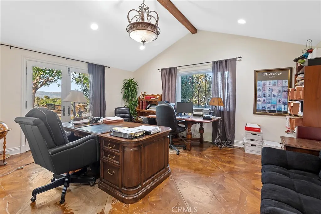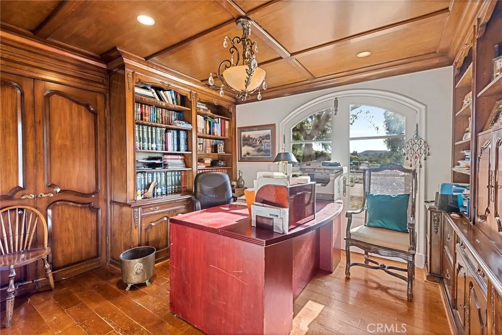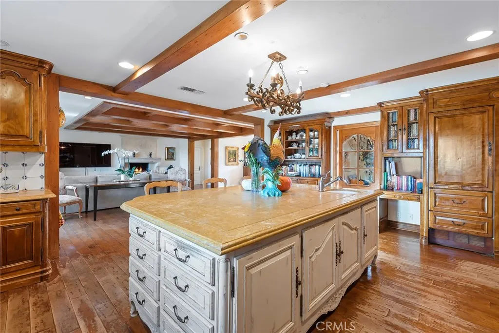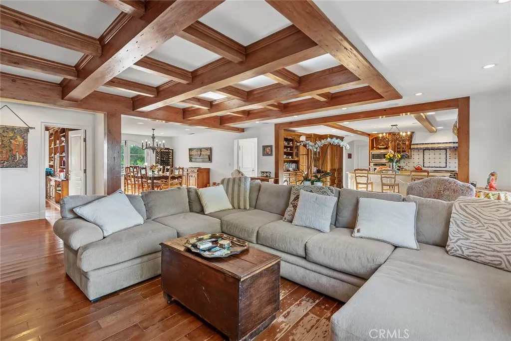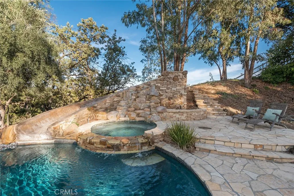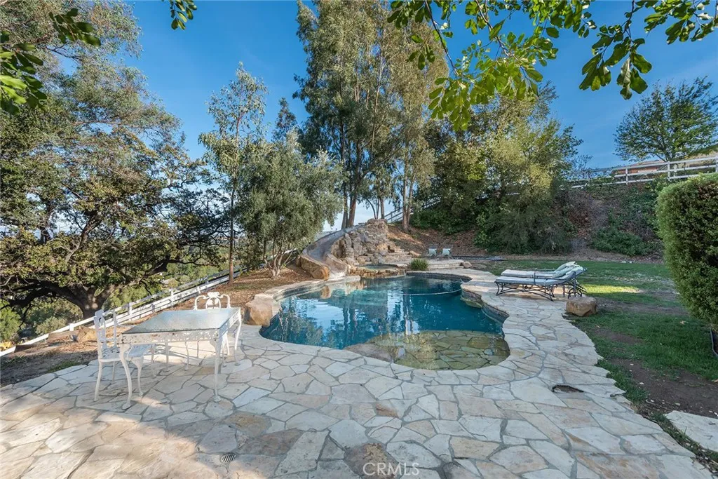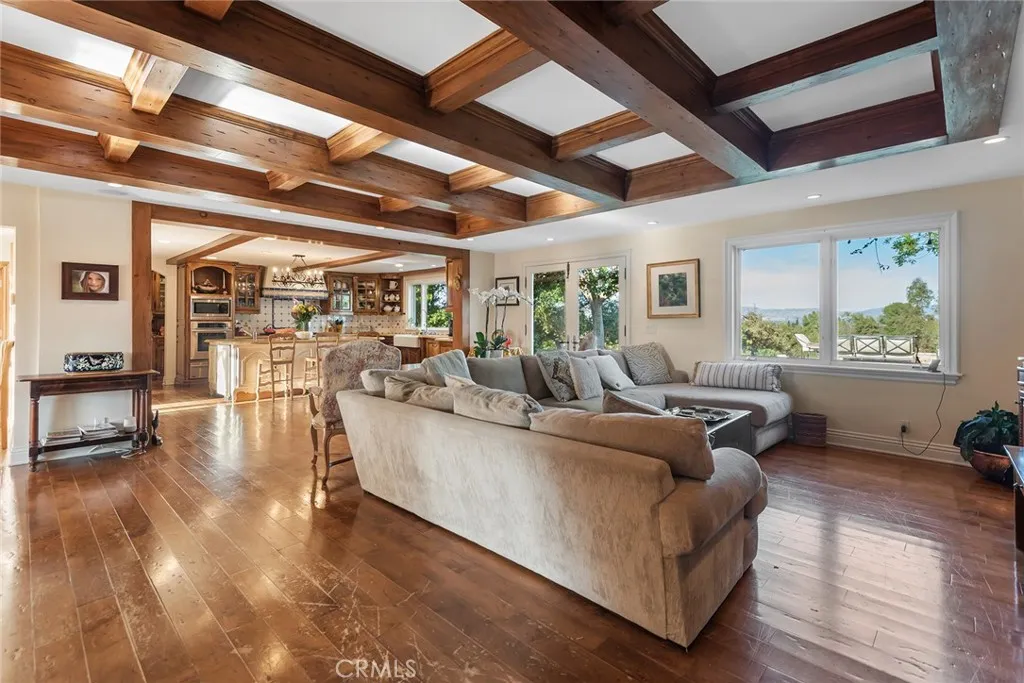 Offered subject to cancellation of current escrow: H.O.A. approved plans for a new, approximate 11,000' home are included with the sale. Pastoral views and spacious grounds highlight this home nestled at the end of a quiet cul-de-sac. Features include a spacious kitchen with a big center island, stainless steel appliances, and large sunny breakfast room, that opens to the family room wit open beam ceilings and cozy fireplace, plus formal living & dining rooms, home office, two bonus rooms, and 5 bedrooms including the primary suite with stone bath and large walk-in closet. (Note: two of the bedrooms do not have built-in closets).The grounds feature a large pool, & spa, spacious grass areas, and lots of mature trees. With its excellent location, great privacy, and prime siting at the top of a view street, this home offers loads of potential.