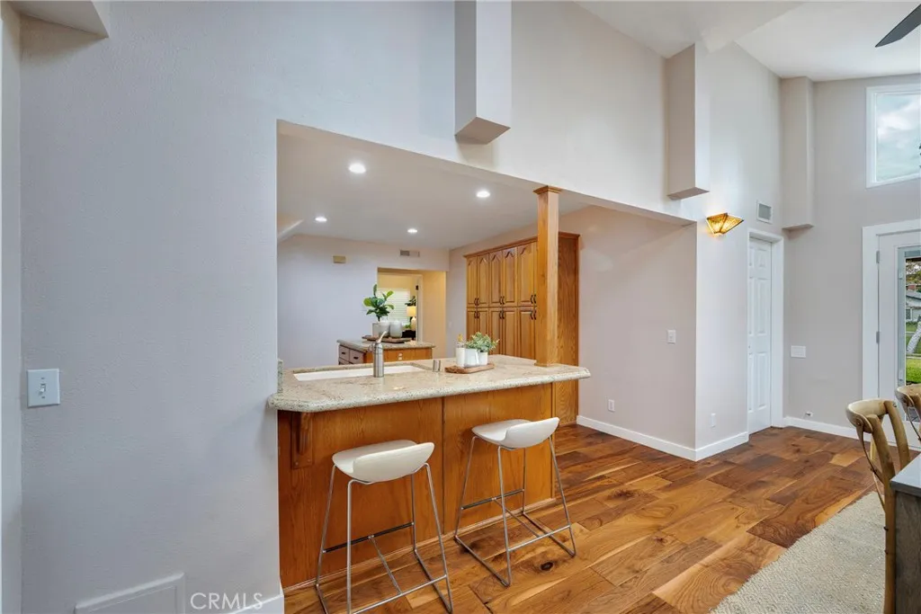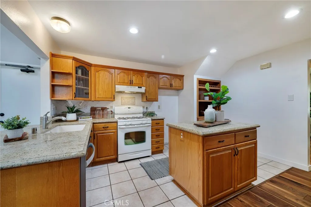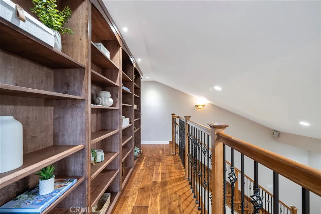This beautifully renovated Yorba Linda residence blends enduring character with thoughtful modern refinement, all set within an enviable location. Its striking stone faade and custom-crafted front door make a memorable first impression, offering a subtle sense of arrival reminiscent of an Old World estate. Within, soaring vaulted ceilings rise above an inviting living space warmed by a newly renovated stone fireplacean unmistakable hearth and focal point. Recessed lighting, rich hardwood floors, new interior doors, and updated dual-paned windows contribute both comfort and efficiency, while the lofts custom built-in bookcase feels like a private study tucked within a tower above. The floor plan is both practical and gracious, with three bedrooms on the main level, including the primary suiteideal for ease of living or multi-generational needs. One downstairs bedroom has been reimagined without a closet, lending itself perfectly to a home office, den, or guest chamber. Above, two additional bedrooms and a remodeled full bath provide ample quarters for family or visiting guests. Outdoors, the rear patio overlooks a tranquil greenbelt and serves as a private courtyard for gathering and entertaining, complete with a built-in barbecue. A lemon tree, attached storage shed, and direct access to the greenbelt beyond add to the homes quiet sense of retreat. Further amenities include fully owned solar panels, ceiling fans in every bedroom, and a two-car attached garage with generous storage and a pull-down attic ladder. Gated side access offers space for a boat, trailer, smaller RVor