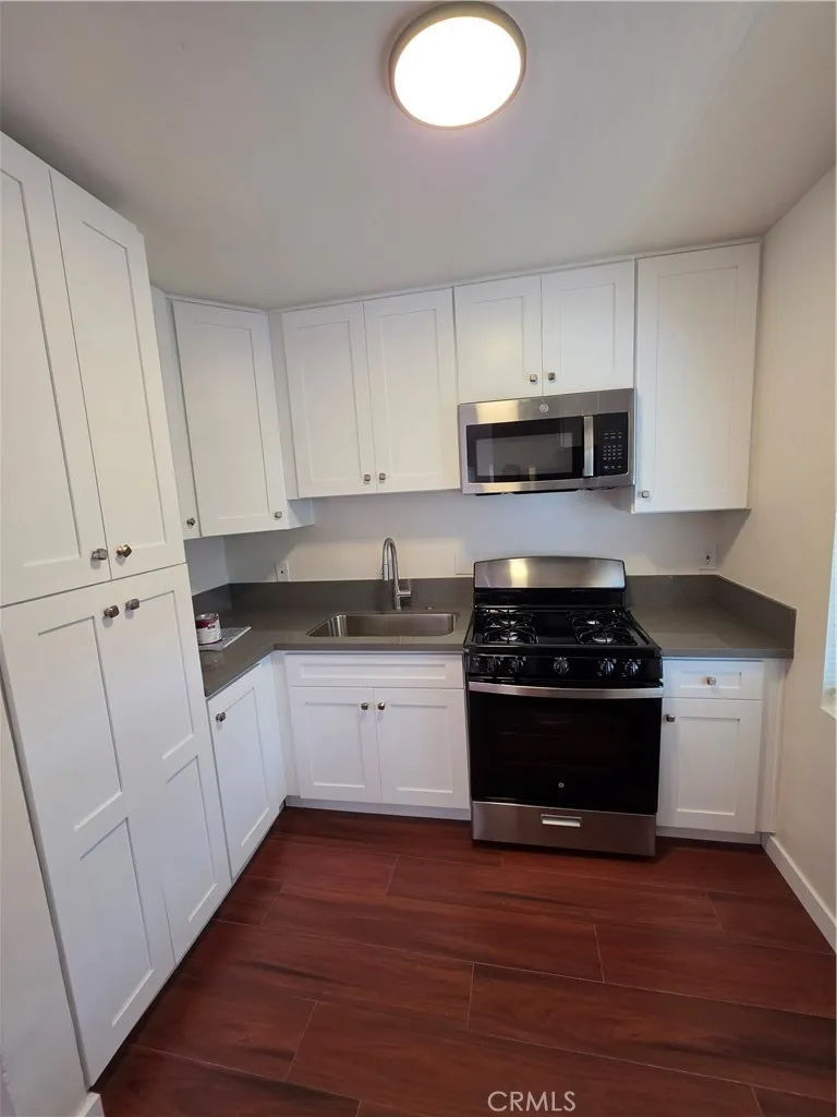 Welcome to your newly renovated oasis in the heart of North Hollywood! This pristine 2 bedroom, 1 bath unit, located on the second floor, boasts modern upgrades and luxurious finishes throughout. Step into the spacious living area flooded with natural light, featuring fresh new flooring that extends seamlessly into the dining area and kitchen. The brand new kitchen is a chef's delight, showcasing elegant coutz countertops, complemented by a suite of brand new stainless steel appliances including a stove and hood. With a new sink and ample cabinet space, meal prep and entertaining are a breeze. Every detail has been carefully considered in this renovation, from the recessed lighting that illuminates every corner to the new windows that frame picturesque views of the surrounding neighborhood. The entire unit has been treated to a fresh coat of paint, lending a sense of crispness and brightness to the space. Both bedrooms offer comfortable retreats, complete with generous closet space and plenty of natural light. The newly renovated bathroom exudes sophistication, featuring a sleek vanity and modern fixtures. Conveniently located in a desirable neighborhood, this unit offers easy access to shops, dining, entertainment, and transportation. Don't miss out on the opportunity to make this beautifully renovated unit your new home!