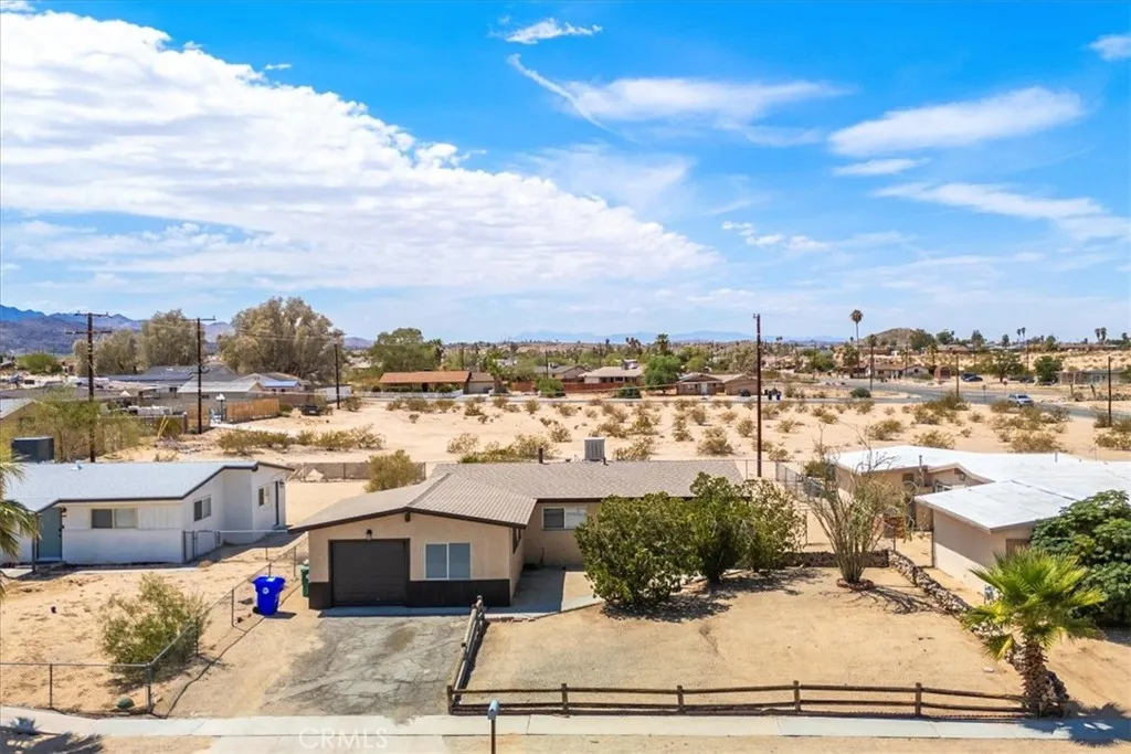 Charming Home in the Heart of 29 Palms! This inviting 3-bedroom, 2-bathroom home spans 1,328 sq ft and offers the perfect blend of comfort and convenience, ideal for first-time buyers or Investors. Step inside to discover a bright, open-concept living space with ample natural light, perfect for relaxing or entertaining. The kitchen with appliance's flows seamlessly into the dining area, while the versatile bonus room offers endless possibilitiesthink home office, playroom, or cozy den. Retreat to the spacious primary suite, complete with an en suite bath for added privacy. Two additional bedrooms provide plenty of space for family, guests, or rental potential. Outside, enjoy a fenced backyard with a covered patio, perfect for savoring warm desert evenings or hosting barbecues. The attached one-car garage offers convenience and storage, while the low-maintenance lot keeps upkeep simple. Nestled next to 29 Palms High School and just minutes from Joshua Tree National Park, local schools, and a vibrant shopping center, this home combines serene desert living with urban accessibility. Don't miss this turnkey gemwhether you're starting your homeownership journey or seeking an investment property, this home delivers unmatched value in a prime location. Schedule your tour today! Buyer to independently verify all MLS information, including, but not limited to, permits, property use, bedroom/bathroom counts, square footage, school districts, and enrollment availability. Buyer is strongly encouraged to conduct their own investigations and inspections to confirm the accuracy of all inf