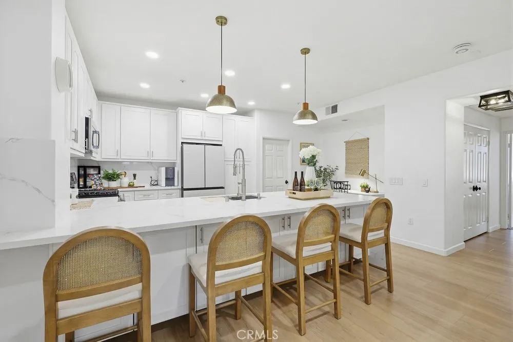 Welcome to this beautiful single-level, spacious 2-bedroom condo located in the highly desirable Northpark Square community. This is a rare end unit home on the ground level facing a tranquil greenbelt, offering indoor-outdoor living that feels like your own backyard, perfect for easy morning walks and unwinding after work. Designed with comfort and functionality in mind, the home features 2 full bedrooms, 2 full bathrooms, and a direct-access oversized, side-by-side 2-car garage. The large open-concept living and dining area is ideal for entertaining or everyday living, highlighted by a cozy fireplace, a huge modern kitchen, and convenient recessed lighting. The gourmet kitchen offers abundant cabinet storage and oversize countertop space. A separate laundry room with utility sink and storage cabinetry adds everyday convenience. The primary suite is a true retreat, featuring a walk-in closet, spa-inspired bathroom with soaking tub and walk-in shower, and dual sinks. Step directly from the primary bedroom onto a covered patio overlooking the greenbelt, which is perfect as a play and relaxing area. Residents enjoy access to community amenities, including two resort-style pools and spa, basketball courts, and parks and childrens playgrounds. This home's location cannot be beat: close to UC Irvine and top-rated local schools. Minutes to H Mart at Northpark Plaza, as well as numerous Irvine shopping centers, dining establishments, and everyday essentials. Easy access to major freeways while maintaining a quiet, residential feel. Don't miss this rare opportunity to secure a spac