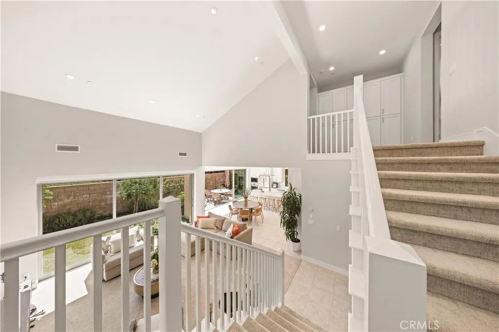 Welcome to this exceptional Fresco 2X residence at 60 Rotunda, ideally located in Irvines highly sought-after Eastwood Village. Rarely found within the community, this home features a greenbelt behind the backyard, offering enhanced privacy with greater distance from rear neighborscreating a more open, tranquil living environment that truly sets it apart. Complemented by a highly desirable high-ceiling living room, the home is filled with natural light and an airy sense of space, delivering both comfort and elegance for everyday living and entertaining.This thoughtfully designed floor plan features 4 bedrooms and 3.5 bathrooms, including an oversized main-level en-suite bedroom expanded through a builder upgradeideal for guests, extended family, or multi-generational living.The home is extensively upgraded with designer-selected finishes throughout, showcasing upgraded flooring, designer tile in all bathrooms, and premium cabinetry, countertops, and hardware in both the kitchen and bathrooms. Additional enhancements such as upgraded plumbing fixtures, custom mirrors, and designer interior paint create a cohesive modern aesthetic.Further highlights include a professionally finished garage with epoxy flooring, upgraded electrical features, and a full window treatment package with custom shutters and roller shades. A fully paid solar system and whole-house soft water system add both efficiency and everyday comfort.Move-in ready and well maintained, this home offers low property taxes and a low HOA, along with access to Eastwood Village amenities including pools, parks, and tra