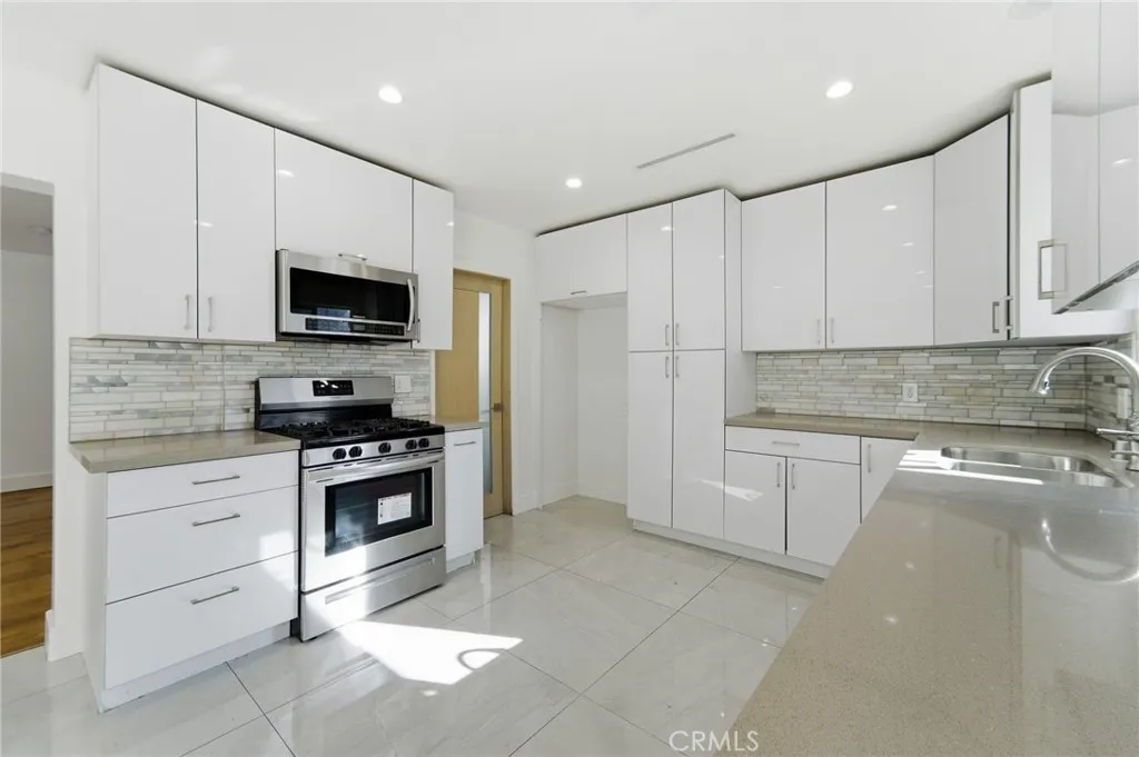 A modern single-family home with a detached ADU, offering flexible living, income potential, and ample parking in the heart of North Hollywood. Offering approximately 2,658 square feet of total living space, this single-family residence with a detached ADU sits on an approximately 6,712-square-foot lot and delivers flexibility, space, and functionality in a well-located North Hollywood setting. The front home is thoughtfully designed and recently updated, featuring three bedrooms and three full bathrooms. The living areas showcase wide-plank wood flooring, recessed lighting, and a striking stone-clad fireplace that anchors the main living space. An open, modern kitchen is finished with sleek white cabinetry, contemporary tile backsplash, stainless steel appliances, and generous counter space, flowing seamlessly into the dining and living areas. Large sliding glass doors connect the interior to a private covered patio and yard, creating an easy indoor-outdoor lifestyle. Bathrooms are clean and modern, with glass-enclosed showers, updated vanities, and neutral finishes throughout. Positioned separately, the two-bedroom, two-bathroom ADU offers its own private entrance and strong versatility. It can function as a rental unit to help offset monthly housing costs, a private guest residence, or a work-from-home or studio space, depending on the occupants needs and applicable regulations. The ADU is currently occupied but can be delivered vacant. A rare opportunity to secure a single-family home with a separate ADU, offering space, privacy, parking, and multiple use options in one