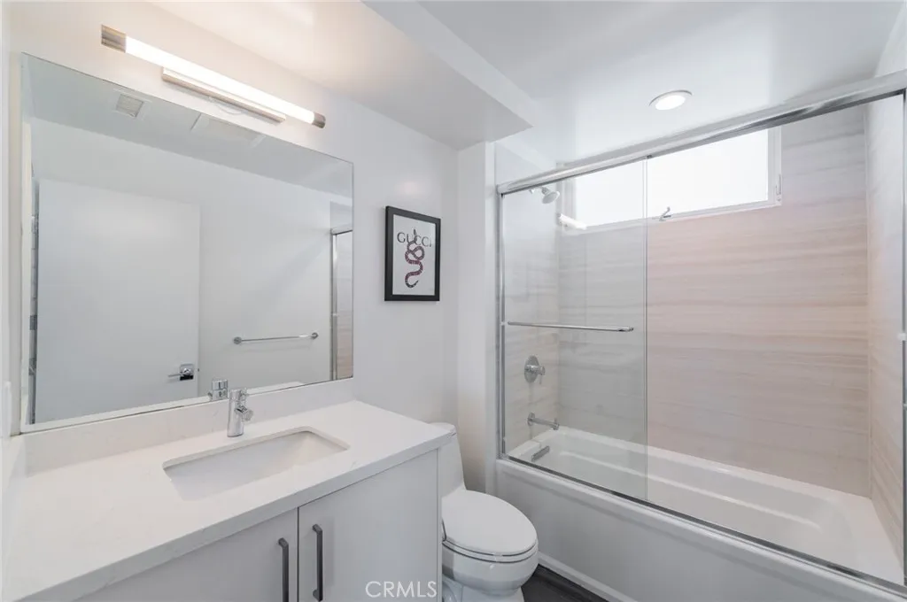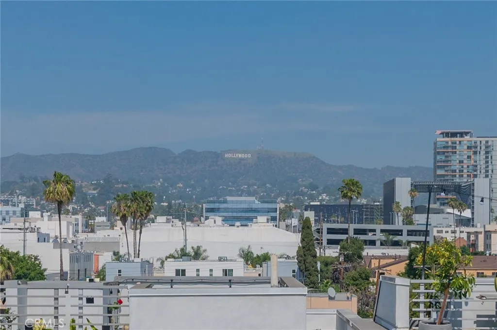 Elevated in the heart of Hollywood, this contemporary single-family residence offers refined urban living within an exclusive gated community. Built in 2017, the tri-level home features approximately 1,942 sq ft, 3 bedrooms, and 4.5 bathrooms. Designed with a modern open layout, the home showcases soaring ceilings, floor-to-ceiling windows, and abundant natural light. The main level flows seamlessly from the living and dining areas into a sleek kitchen with quartz countertops, stainless steel appliances, and custom cabinetry. A versatile mezzanine provides ideal space for a home office or lounge. The top-floor primary suite offers a private retreat with a walk-in closet, dual vanities, and a spa-inspired shower, while a ground-level ensuite bedroom adds flexibility for guests. Enjoy multiple outdoor spaces including a private balcony and a rooftop deck with panoramic city views and a direct view of the iconic Hollywood Signperfect for elevated entertaining. Complete with a direct-access two-car garage, in-unit laundry, and a prime location near top dining, nightlife, and entertainment, this home delivers a rare blend of privacy, style, and convenience in one of Los Angeles most vibrant neighborhoods.