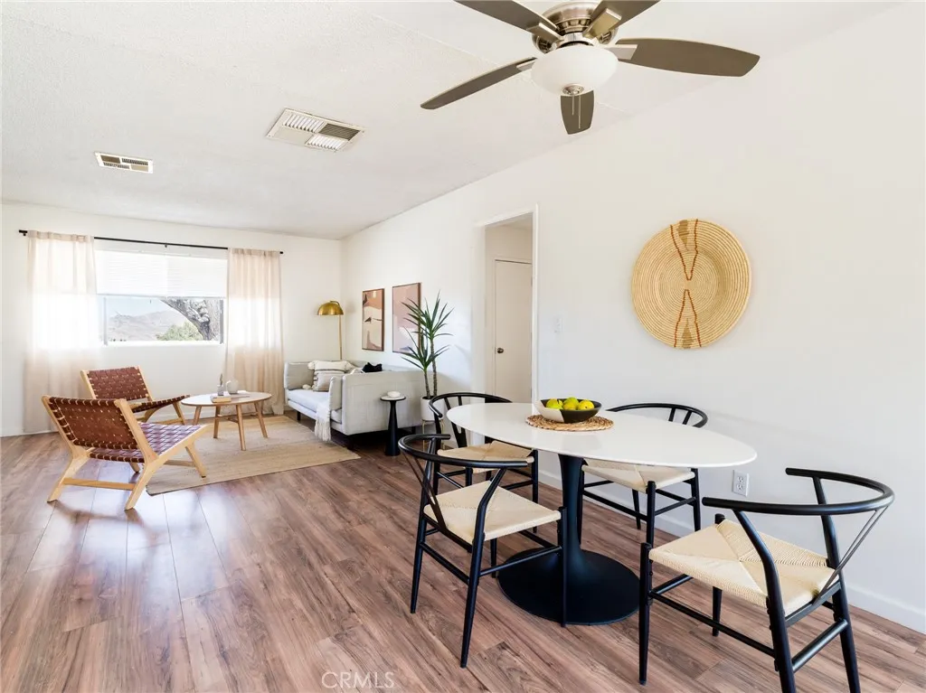 Upper Friendly Hills Gem! Elevated above the street with sweeping views across the Joshua Tree basin and the hills of JTNP rising just beyond. Desert-chic vibes flow through this four-bedroom, two-bath home with an open floor plan and expansive north-facing views from the living room over the valley below. The spacious backyard features a hot tub for stargazing and plenty of room for a future in-ground pool. Just 5 minutes to Joshua Tree National Parks West Entrance and 2 minutes to downtown shops, restaurants, and cafs. With some of the hi-deserts highest-rated schools nearby and hiking trails within walking distance, this location is ideal for full-time living, a cozy vacation home near town and the park, or an income property with strong rental potential. See this now and snap it up before it's gone!