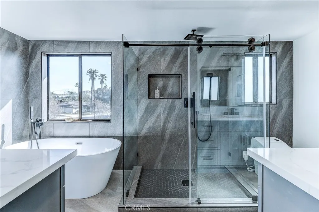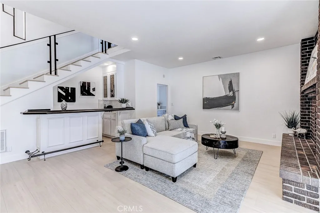 Exquisitely renovated and impeccably designed, this stunning 4 bedroom, 3 bath estate in the heart of Glendora offers 2,652 square feet of sophisticated living and effortless elegance. Privately set behind a sweeping circular driveway and complemented by a three-car finished garage with generous additional parking, this residence immediately impresses with its striking curb appeal, partial brick faade, and grand double-door entry. Inside, upgraded wide-plank flooring and soft recessed lighting create a warm yet contemporary ambiance throughout. The thoughtfully designed formal living and dining spaces include a step-down living room adorned with a charming bay windowan inviting setting for intimate gatherings and refined entertaining. At the heart of the home lies a spectacular, fully remodeled chefs kitchen featuring gleaming quartz countertops, brand-new stainless-steel appliances, custom cabinetry, and a dramatic waterfall island with seating for four. The adjoining breakfast nook overlooks the family room through a sleek glass balustrade and opens seamlessly to the backyard, creating a natural flow between indoor comfort and outdoor leisure. The step-down family room is rich in character, highlighted by a statement brick-mantled fireplace, a full wet bar, and an expansive sliding door that enhances the homes indoor-outdoor lifestyle. A desirable downstairs bedroom suite offers privacy and flexibility, complete with yard access and serene mountain views. The adjacent three-quarter bath has been beautifully reimagined with quartz counters, designer cabinetry, and direct o