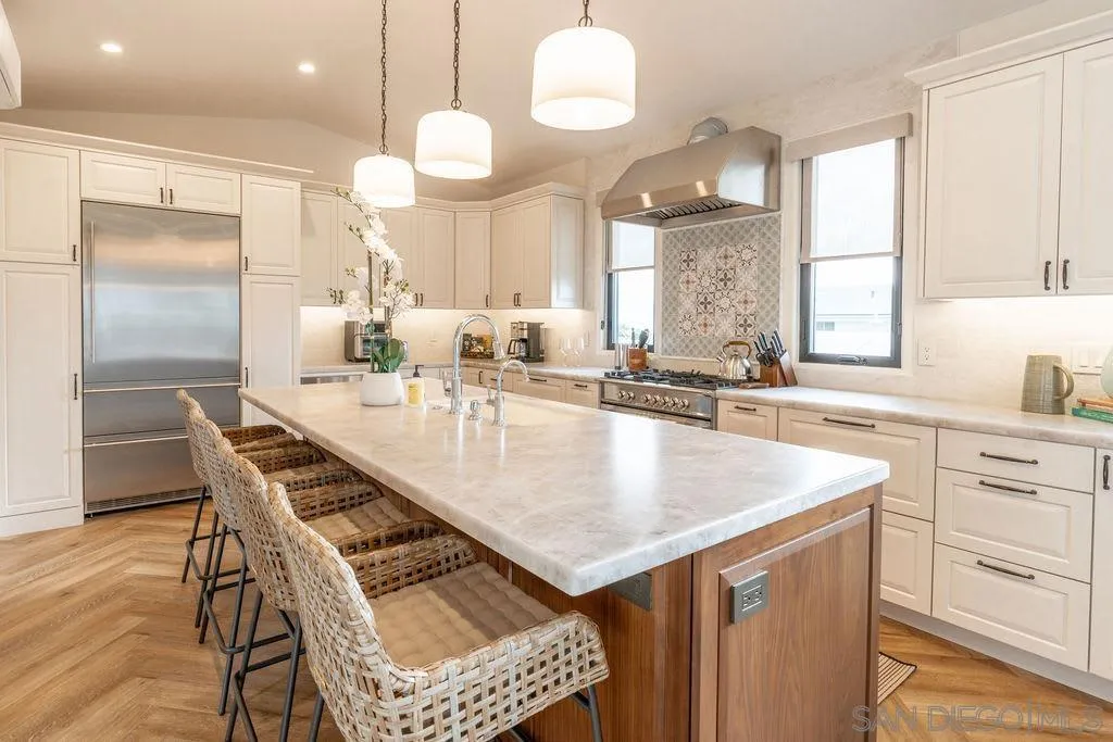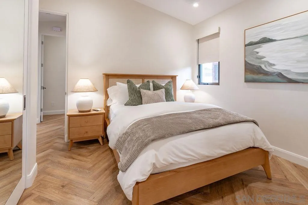 Fully furnished rental – Enchanting Encinitas Oceanview Casita Enjoy coastal living in this newly built 2BR/2.5BA Spanish-style detached casita with stunning ocean views. Located in the heart of Encinitas, just 10 minutes from Moonlight Beach, shops, and dining, this sunset sanctuary blends tranquility with sophistication. Enter through a gated private driveway to hardwood floors, high ceilings, and an airy, open layout. The living room and chef’s kitchen flow seamlessly, featuring stainless appliances, a large island with seating, and panoramic ocean vistas. Cozy up by the fireplace or relax on the comfortable sofa. The primary bedroom offers a queen bed with en-suite bath, dual vanity, and soaking tub; the second bedroom has a full daybed with trundle. Additional amenities include 2.5 elegantly finished bathrooms, fully paid solar, stacked washer/dryer, air conditioning, and small dogs allowed with approval. Experience the perfect combination of surf, sand, and sophisticated coastal living in Encinitas, known for its surf culture, nurseries, gardens, and iconic beaches. Maximum occupancy 5 guests.
