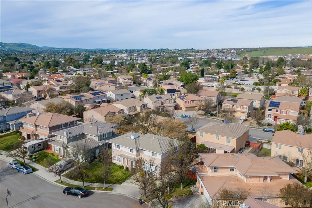 Pristine Paso Robles Home with Main-Level Primary Suite! Welcome to this beautifully maintained residence offering 2,030 square feet of thoughtfully designed living space. This 3-bedroom home includes a versatile bonus/office room and 2.5 baths, ideal for both comfortable living and flexible work-from-home needs. The primary bedroom is conveniently located on the main floor and features double closets, dual sinks, a separate shower and a relaxing soaking tub. The spacious living and dining areas showcase high ceilings and an electric fireplace, creating an inviting and open atmosphere. Some of the upgrades include fresh interior paint throughout, new carpet in the upstairs bedrooms, and engineered hardwood flooring. The updated kitchen is equipped with quartz countertops and a breakfast bar, perfect for casual dining and entertaining. Abundant storage is found throughout the home, including multiple linen and storage cabinets. Additional highlights include a two-car garage with extra driveway parking, a water softener, and serene, beautifully landscaped yards with multiple patio areas and convenient side yard storage area. This immaculate property is truly move-in ready and represents an exceptional opportunity in Paso Robles. Disclaimer, virtual staging has been added to some of the photos.