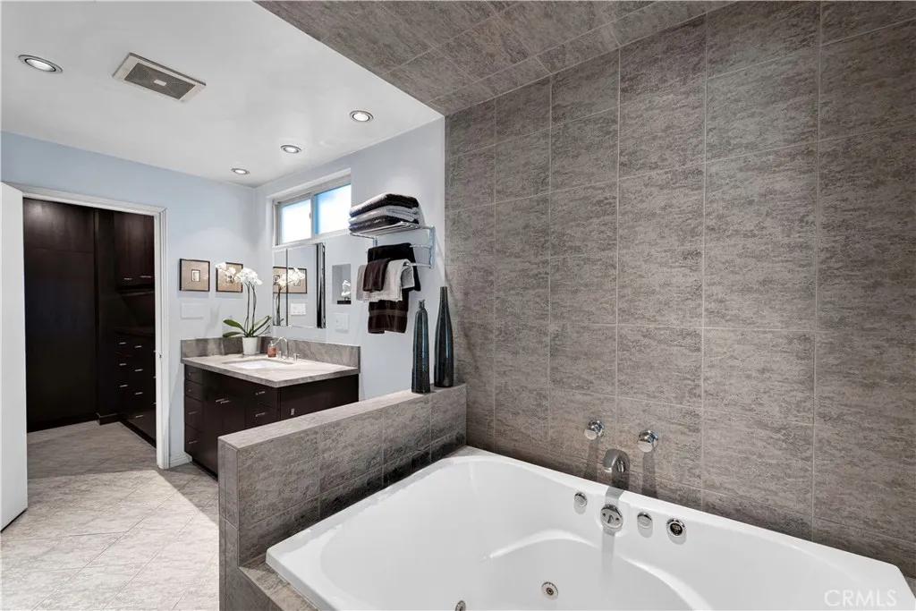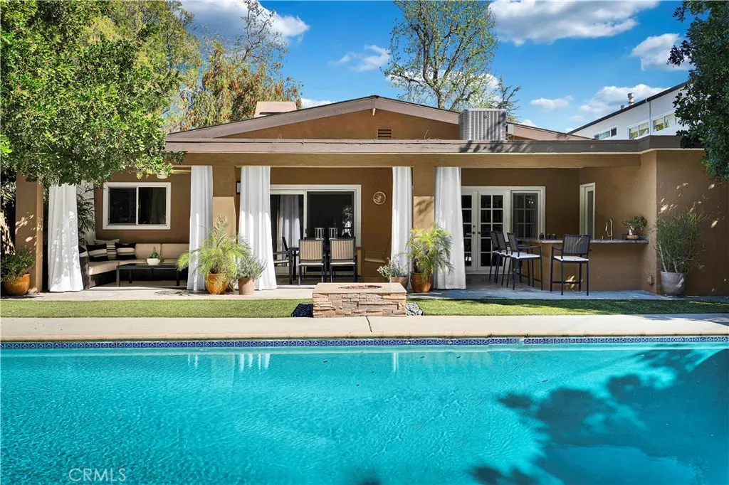 6119 Mary Ellen is all about clean Mid-Century Modern vibes beginning with the clerestory windows - the hallmark of MCM architecture. Upon entering the 4 bedroom 2 bath 2,046 sqft pool home, these windows allow light to flood the living/dining room while maintaining privacy. Dine by the window wall that looks out upon the serene side yard garden with custom stacked stone wall. The living room and dining area feature a vaulted, beamed tongue and groove ceiling and earthy tile floors. The updated kitchen boasts flat-panel cabinetry, under cabinet lighting, NEW dishwasher, quartz countertops, travertine floors, breakfast bar, custom bar area, washer/dryer and plenty of storage. Opening to the kitchen, the family room has access to the covered outdoor kitchen, lanai, pool and beautifully landscaped backyard. Entertain year-round in this gorgeous setting that feels like resort! All 4 bedrooms are off the same hall on the south side of the home. The main ensuite has access to the backyard, a custom closet/dressing area and spa-like bathroom complete with elegant tub and shower 'wet room.' The updated hall bath easily services the 3 additional bedrooms and has dual sinks, limestone counters, soaker tub/shower and travertine floors. Enjoy the privacy this swanky home offers located at the end of the cul-de-sac in one of Valley Glen's finest neighborhoods, and just steps away from the beautifully maintained Valley Glen Community Park. Easy access to freeways, NoHo West and Valley College. Hurry! See this one before it is going going gone!