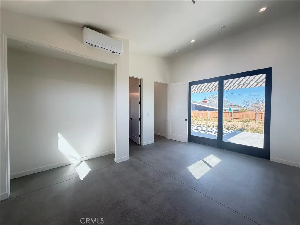 Experience modern desert luxury in this stunning never lived in 2024 new-construction masterpiece located in the heart of Joshua Tree. Perfectly blending contemporary aesthetics with high-efficiency living, this 2-bedroom, 2-bathroom home offers 1,302 sq. ft. of meticulously designed space. Step inside to an expansive open-concept floor plan featuring soaring ceilings, polished concrete floors, and abundant natural light. The chef-inspired kitchen serves as the home's centerpiece, boasting a double-waterfall quartz island, custom cabinetry, and premium stainless steel appliances. Both bedrooms are generously sized, while the bathrooms offer a spa-like retreat with custom tile work and sleek walk-in showers. Designed for the modern environmentalist, the property includes fully paid solar panels and an energy-efficient zoned ductless mini-split HVAC system. Outside, the property sits on a spacious lot with mountain views, offering a blank canvas for your desert oasis or a high-end short-term rental. Located just minutes from the Joshua Tree National Park entrance and the vibrant local Village, this home is the ultimate desert sanctuary.