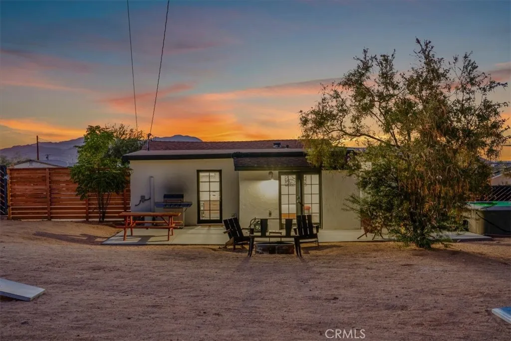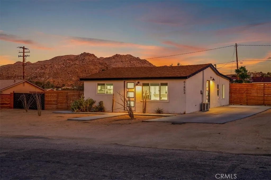 This one is really a must see with a great price! This newly renovated 2-bedroom, 1-bathroom home blends modern upgrades with desert charm, this one is five minutes from the Park Entrance, one minute from downtown, ten minutes away from 29 Palms, and the vast desert area gives this property a surreal feeling. The property has been a successful STR for years, and the upgrades that you see have been completed over the last two years. The privacy fence around the property gives a secluded feeling while enjoying the night sky and spa in the backyard! The open-concept living area is filled with natural light, while the updated kitchen features quartz countertops and new appliances. Both bedrooms are spacious with large windows, and the remodeled bathroom boasts contemporary finishes. On the street that the property cities is a perfect position to get great views of the whole landscape and still have the closeness of city life! Come check this one out!